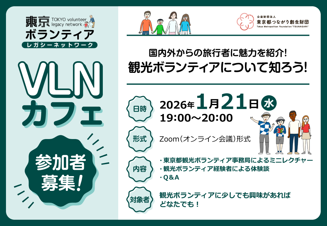 【1月21日VLNカフェ】国内外からの旅行者に魅力を紹介!観光ボランティアについて知ろう!