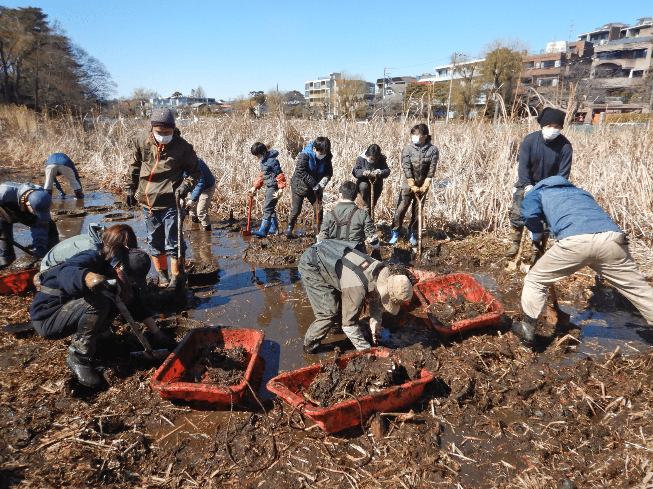 石神井公園 石神井池を生きもの豊かな水辺にしよう! 湿地掘りの日