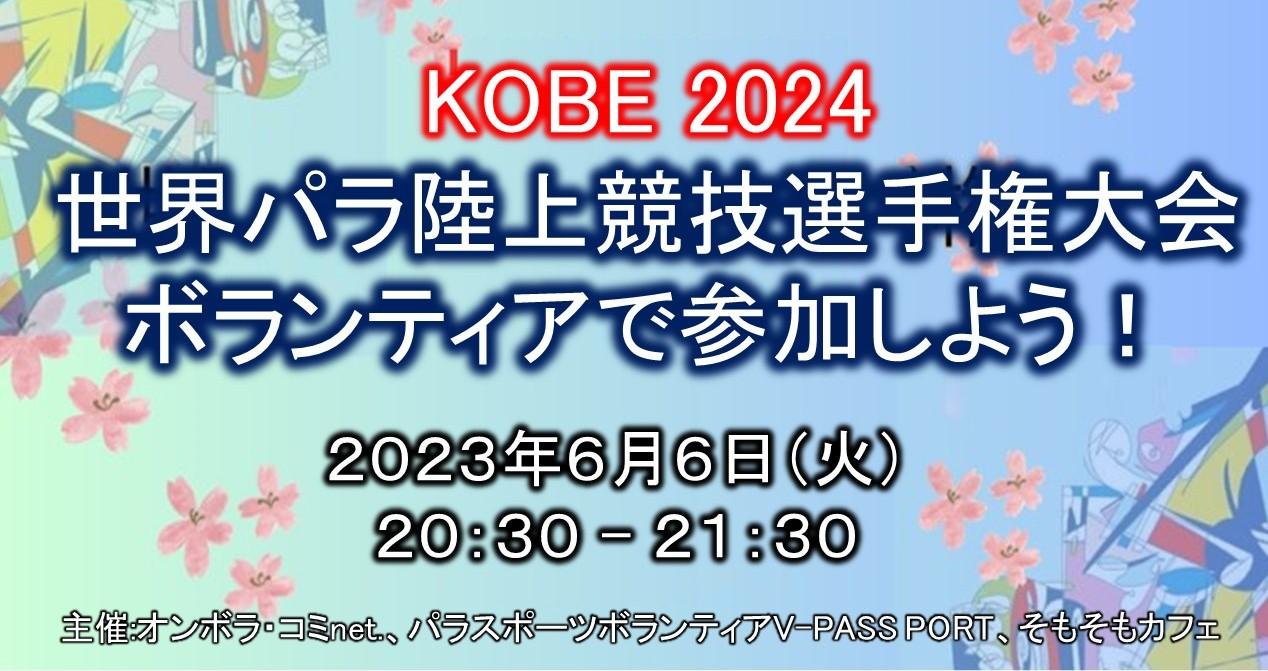 2024年5月に開催される、神戸2024世界パラ陸上競技選手権大会のボランティア募集が始まりました。世界約100の国・地域から約2,300人が参加する世界最高峰のパラ陸上大会のメンバーとして、ボランティアで参加してみませんか!大会を盛り上げる、支えるボランティアの応募につなげるオンラインイベントを「そもそもカフェ、オンボラ・コミnet、パラスポーツボランティアV-PASS PORT」の共同で開催します!