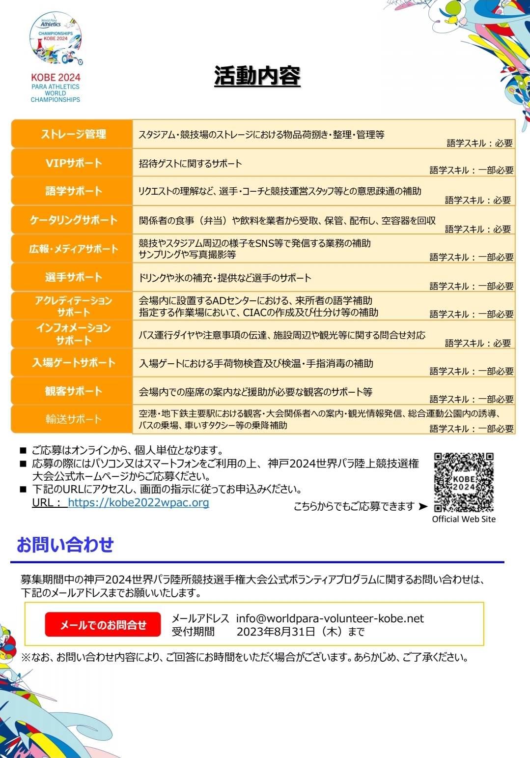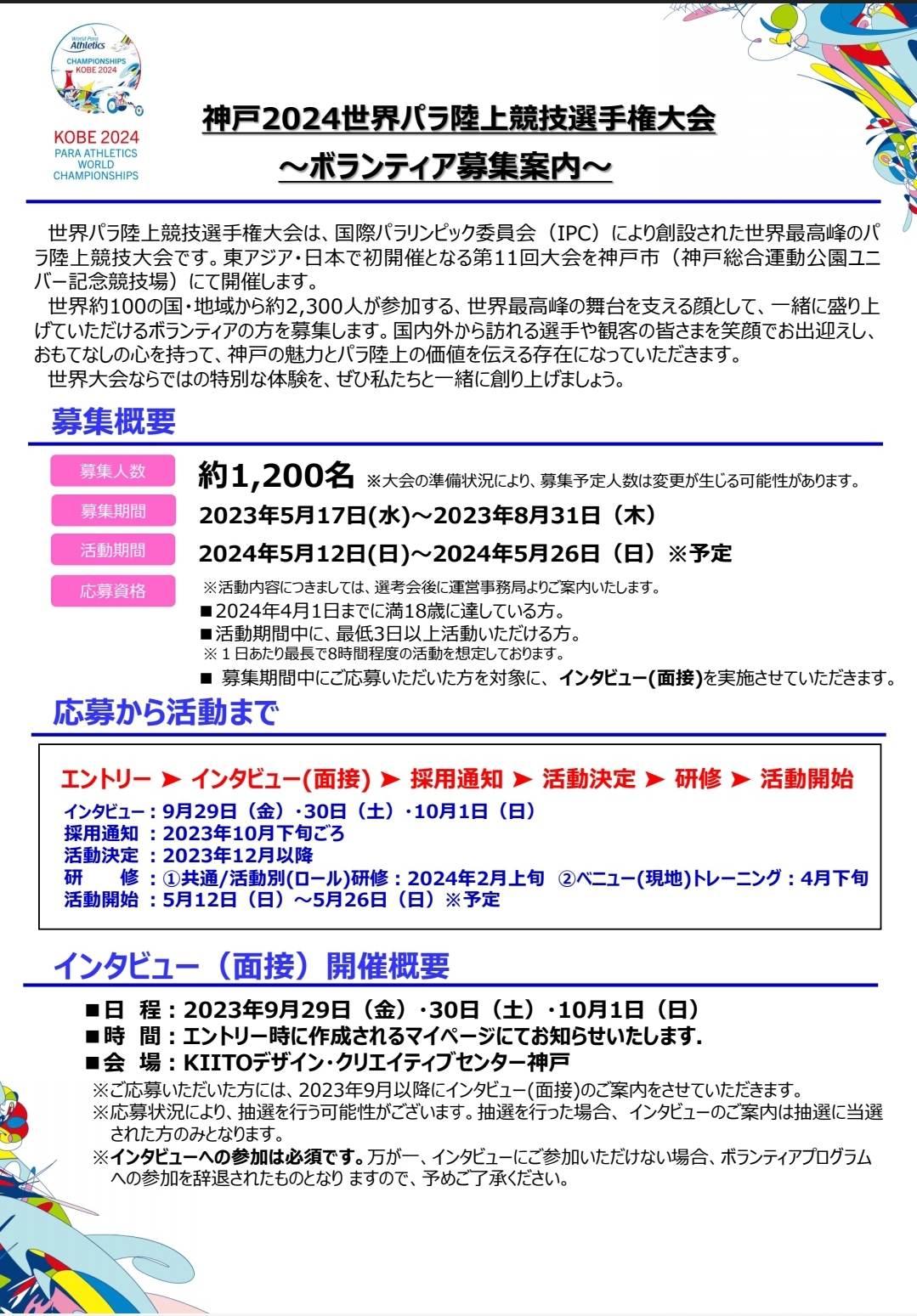 KOBE2024世界パラ陸上競技選手権大会ボランティアに参加しよう!