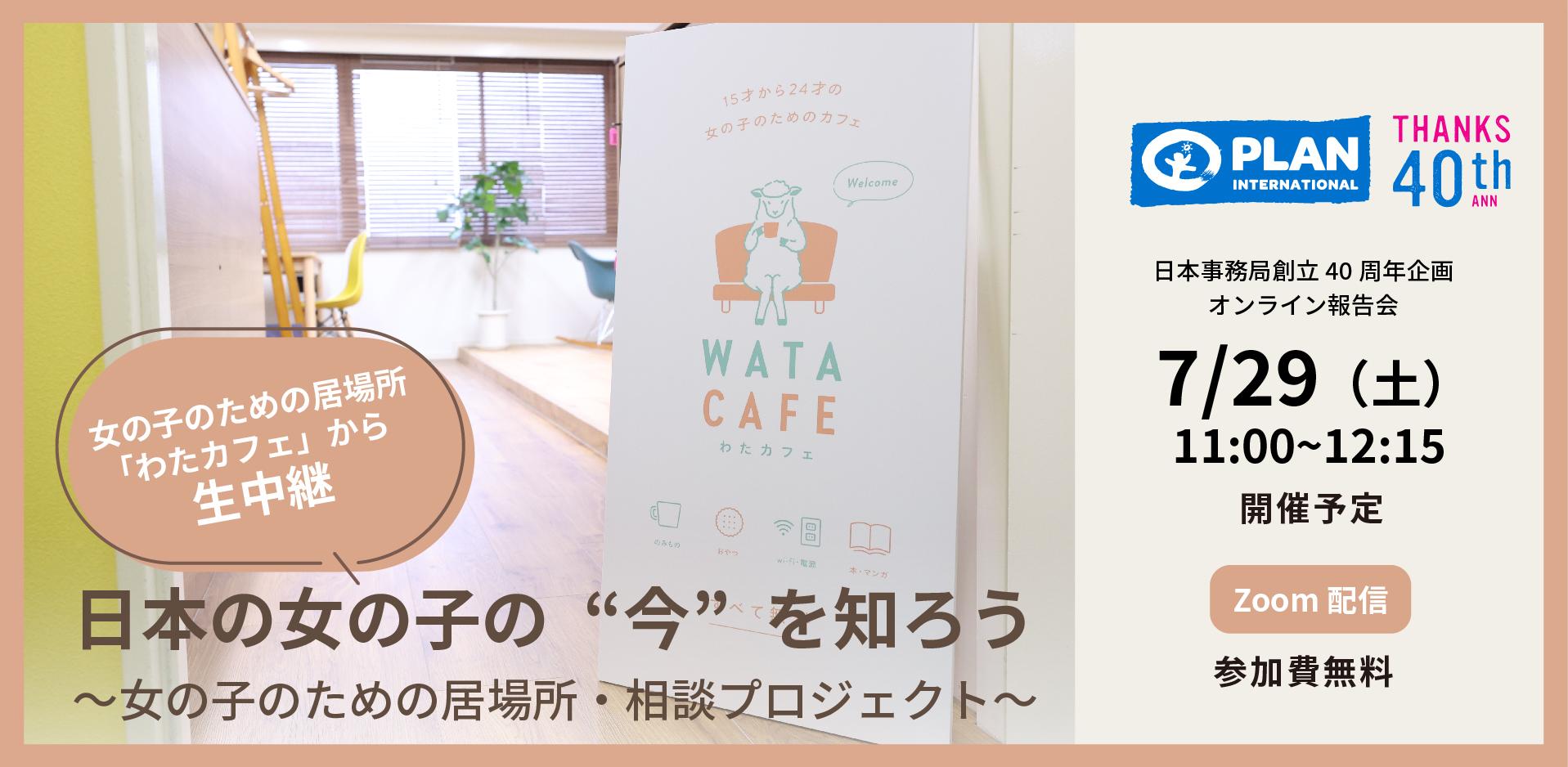 2023年1月に、プランは国内支援事業として「女の子のための居場所・相談」プロジェクトを本格稼働させました。当日は、東京・池袋にある女の子のための居場所「わたカフェ」からの生中継で、普段は見えてこない若年層の女の子を取り巻く課題や、プランが日本で支援を行う必要性や意義を、現場で働く社会福祉士、臨床心理士がお話しします。