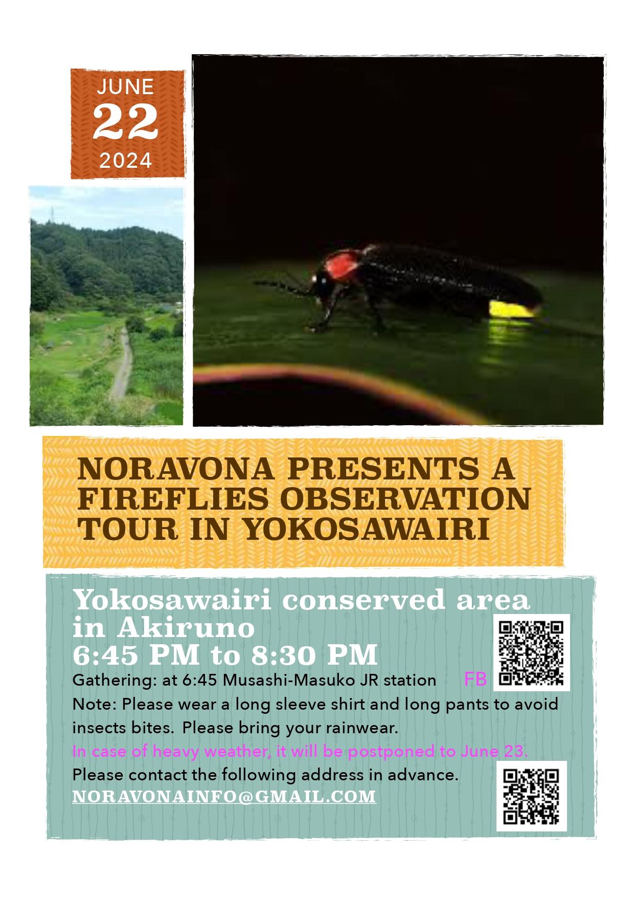 Join us on the Fireflies Observation Tour at Yokosawairi Conserved Satoyama farm area in Akiruno, Tokyo.