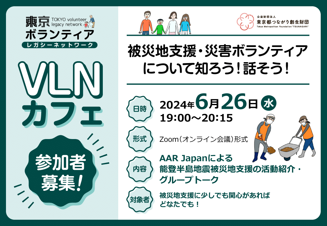 【6月26日】VLNカフェ参加者募集!被災地支援・災害ボランティアについて知ろう!話そう!