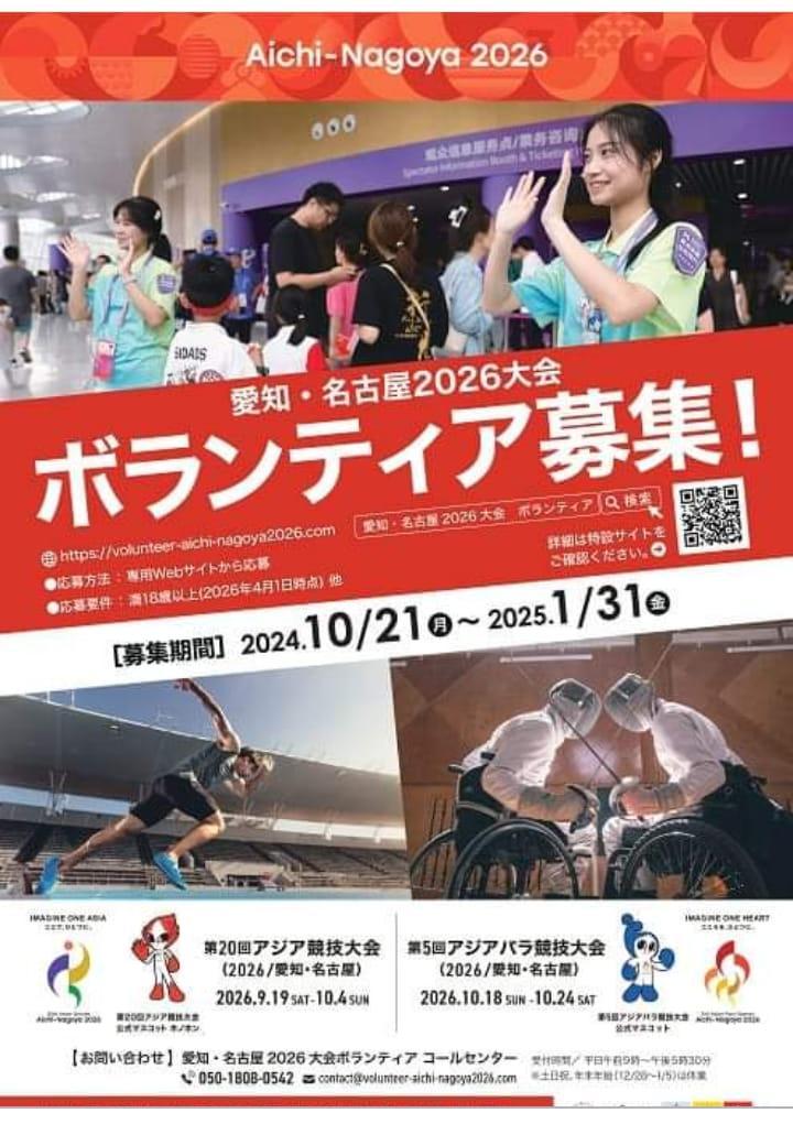 【愛知・名古屋アジア大会のボランティア説明会・参加者募集!】2026年に開催する「愛知・名古屋アジア大会」のボランティア説明会開催します!