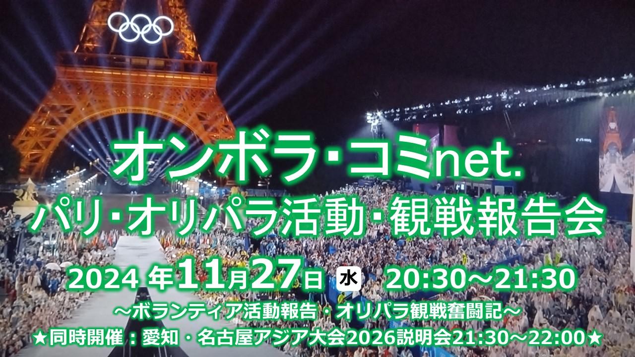 【パリ・オリパラ活動・観戦報告会・参加者募集!】★同時開催:愛知・名古屋アジア大会2026ボランティア説明会★