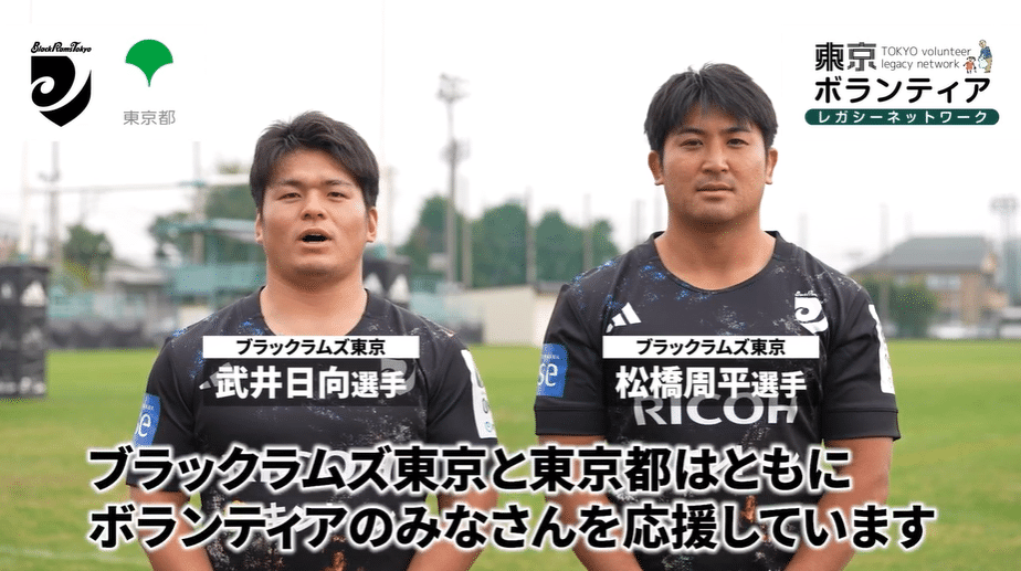 ブラックラムズ東京の武井日向選手・松橋周平選手がチームの公式ボランティア組織であるRamgelist(ラムジェリスト)の活動とVLNを紹介するコラボPR映像を制作しましたので、ぜひご覧ください!この映像はイベント当日の試合会場大型ビジョンのほか、SNSやデジタルサイネージなどで放映します。