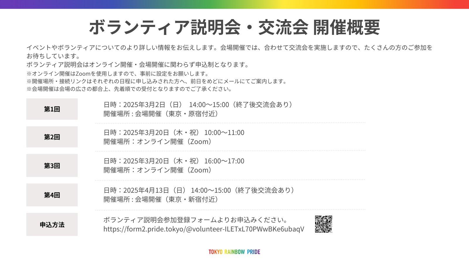 Tokyo Pride 2025 Pride Parade & Festival ボランティア説明会