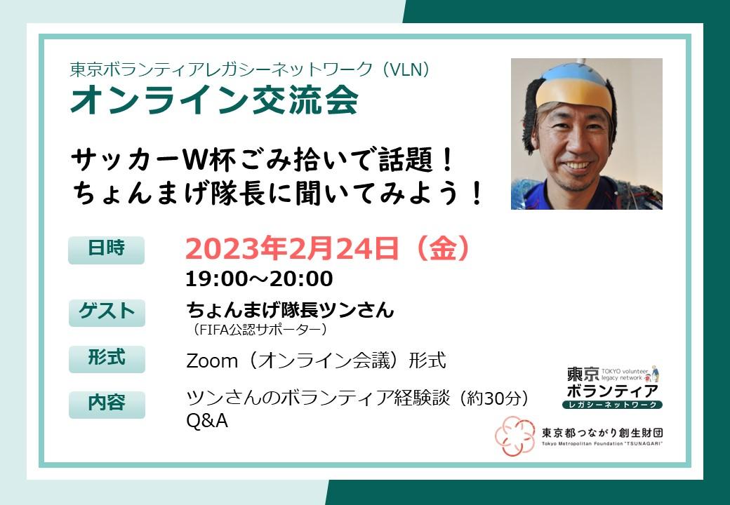 VLNでは、2月24日(金)にオンライン交流会を実施します!今回は、なんと!カタールでのサッカーW杯でごみ拾いの活動が称賛を浴び、「名物サポーター」として、国内外のメディアで話題になっている「ちょんまげ隊長ツン」さんを特別ゲストにお招きします!
