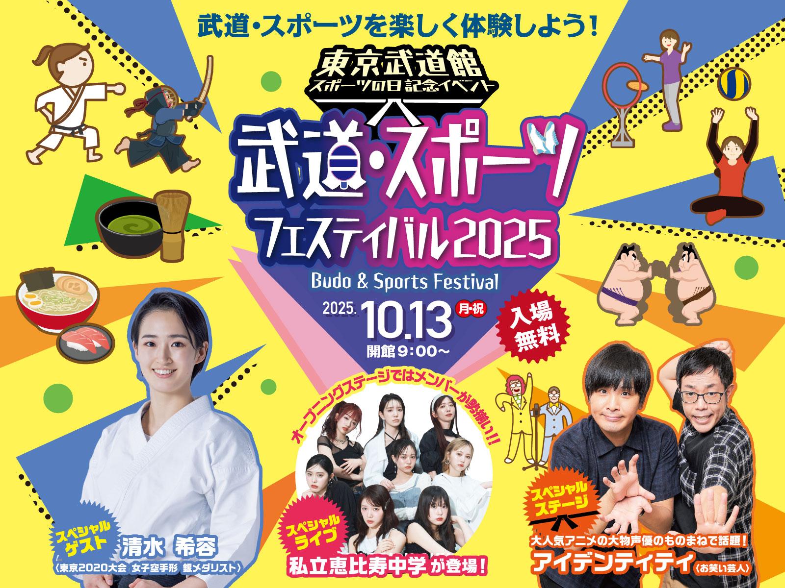 本年10月13日(月・祝)「スポーツの日」に、東京武道館(足立区)で、子供から大人まで誰もが武道やスポーツを楽しく体験できるイベント「武道・スポーツフェスティバル2025」を開催します。