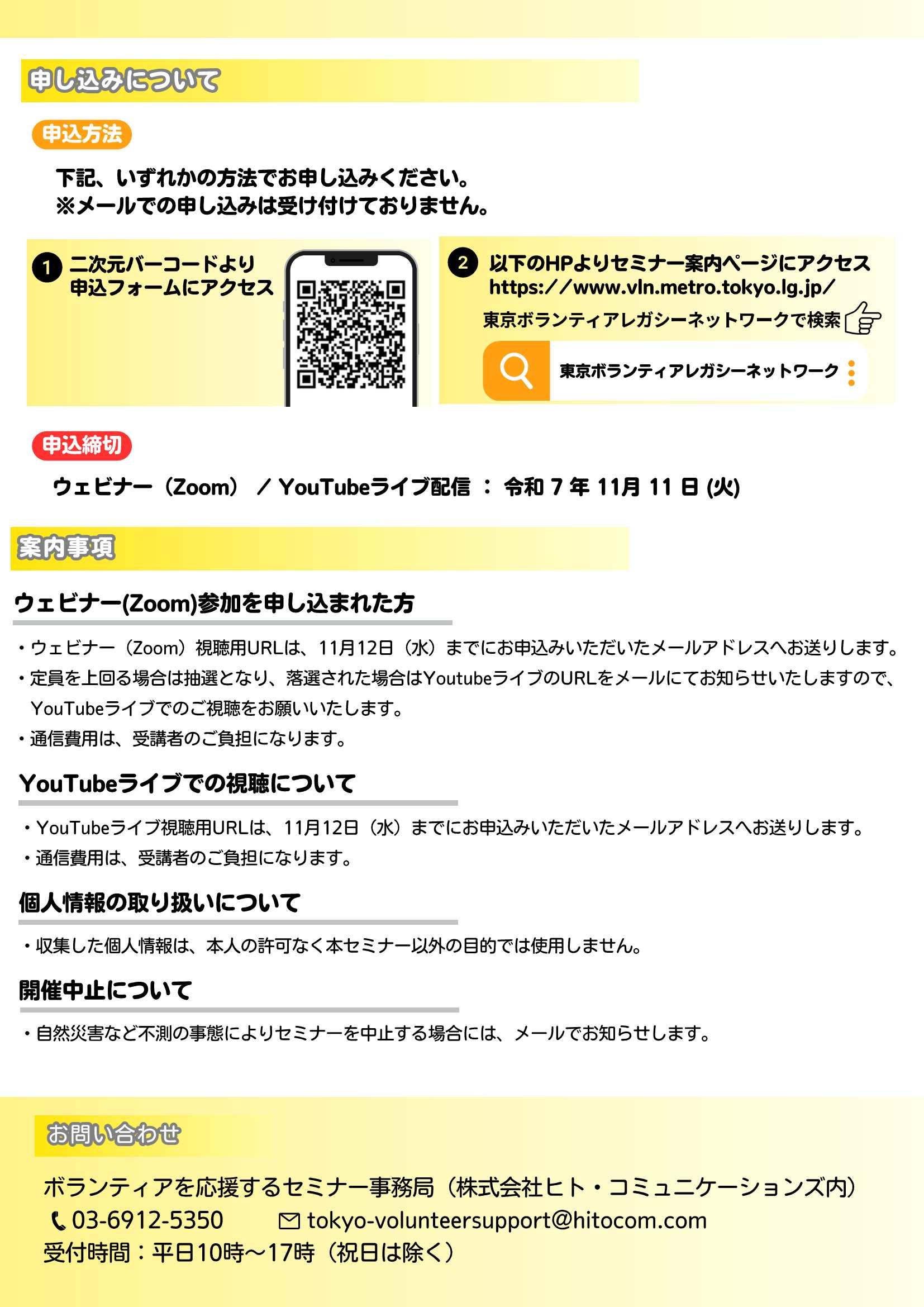 東京都は、みなさまのボランティア活動を後押しするために、様々なテーマで「ボランティアを応援するセミナー」を開催しています。