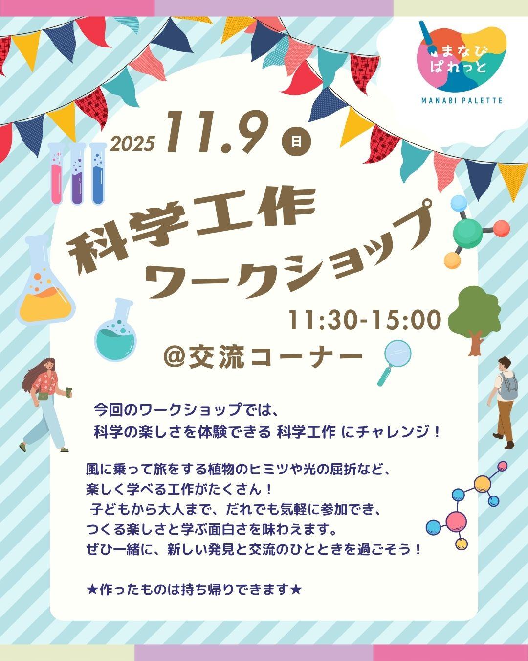 一般社団法人まなびぱれっとによる科学をテーマにしたワークショップを実施します。