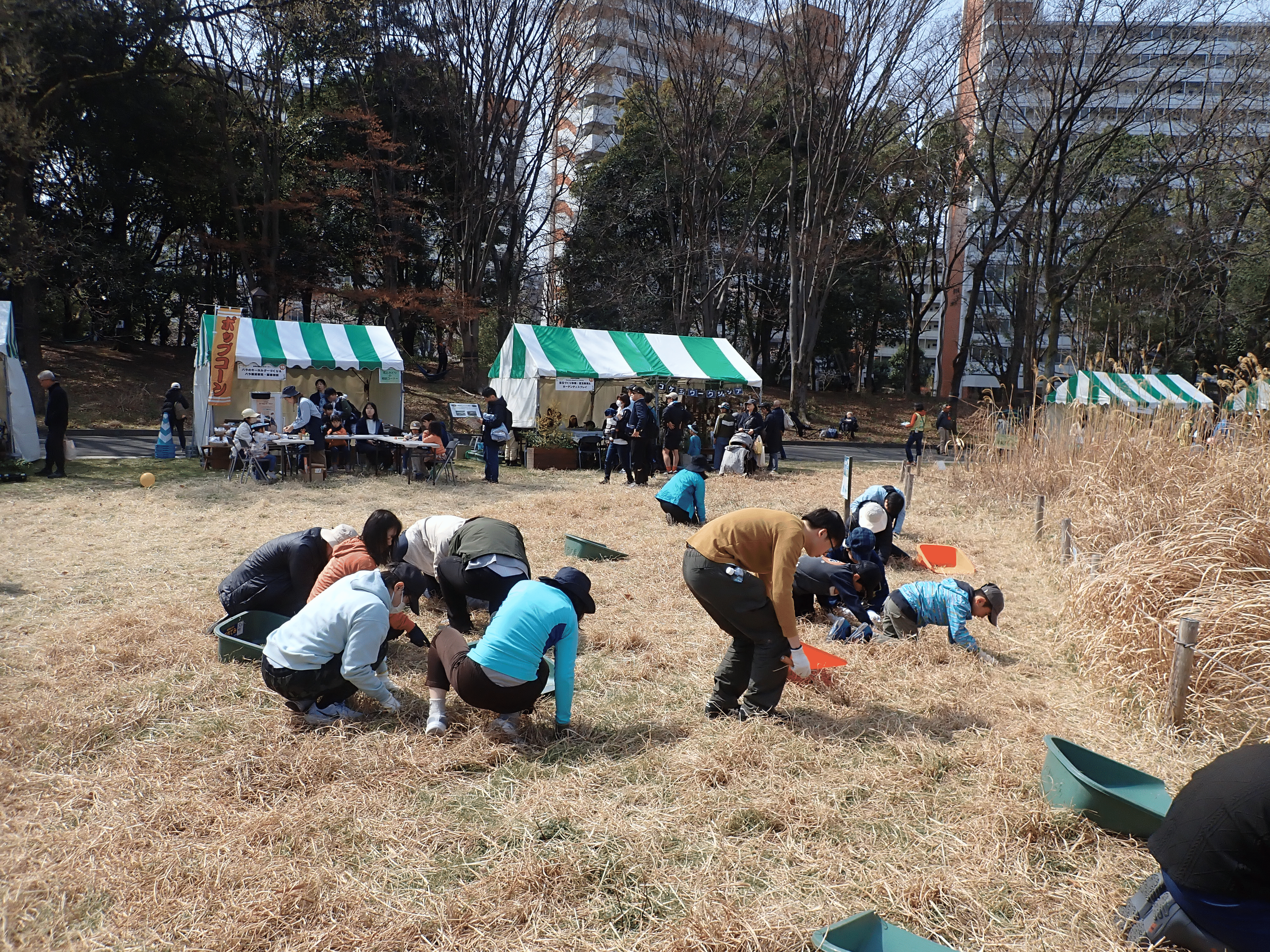 3月22日に草はらの日を開催しました。すすき原っぱに集まった26名で作業を行いました。同日開催のねりまみどりフェスタで、すすき原っぱの周りはいつになく賑わっていました。