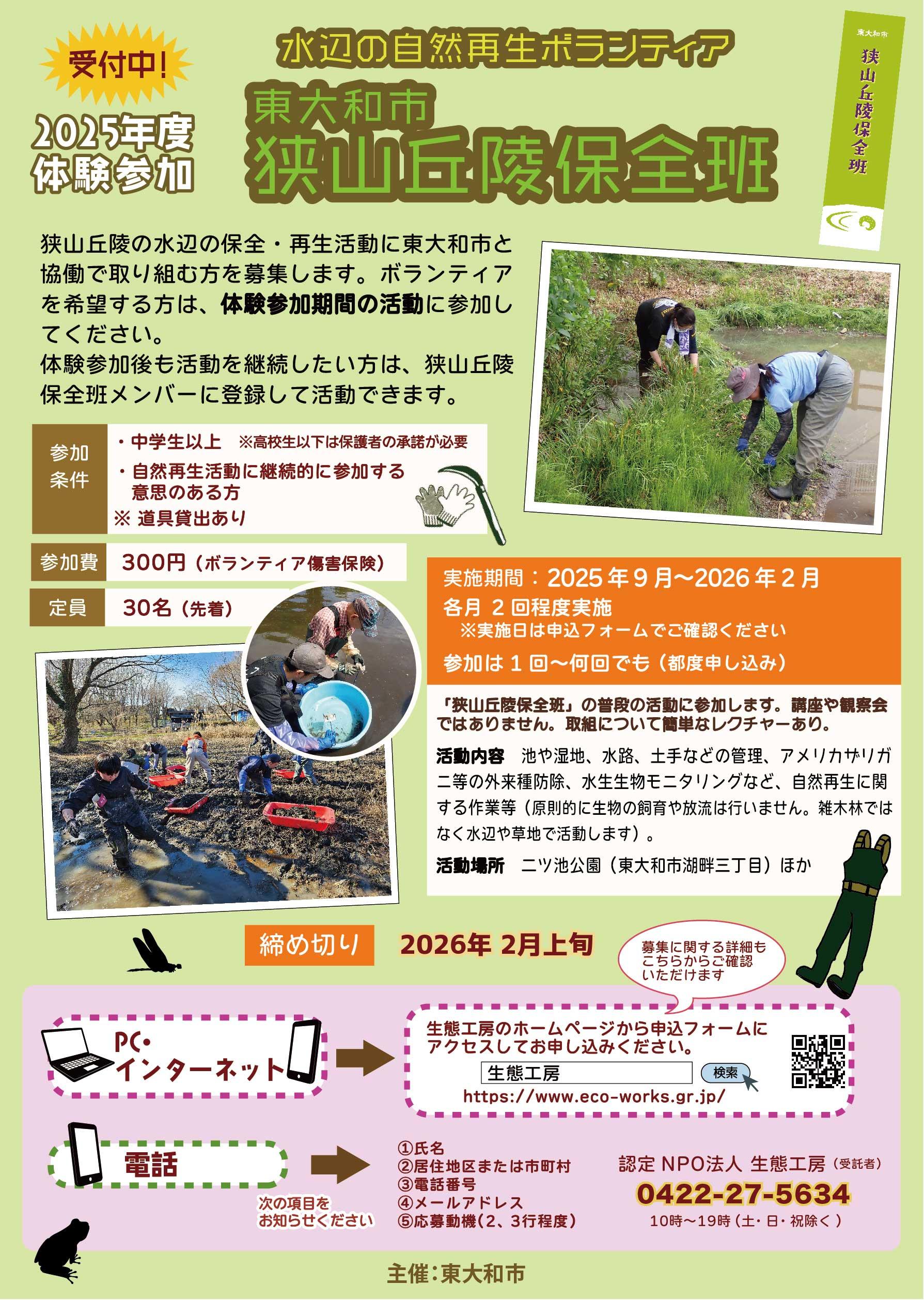 ※体験参加では、ボランティア「狭山丘陵保全班」の普段の活動に参加します。講座や観察会ではありません。取組の概要について簡単なレクチャーあり。