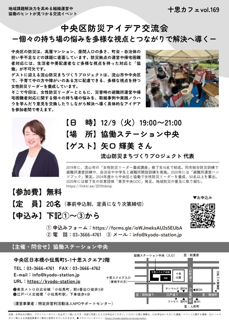 中央区防災アイデア交流会 ー個々の持ち場の悩みを多様な視点とつながりで解決へ導くー【十思カフェvol.169】(協働ステーション中央)