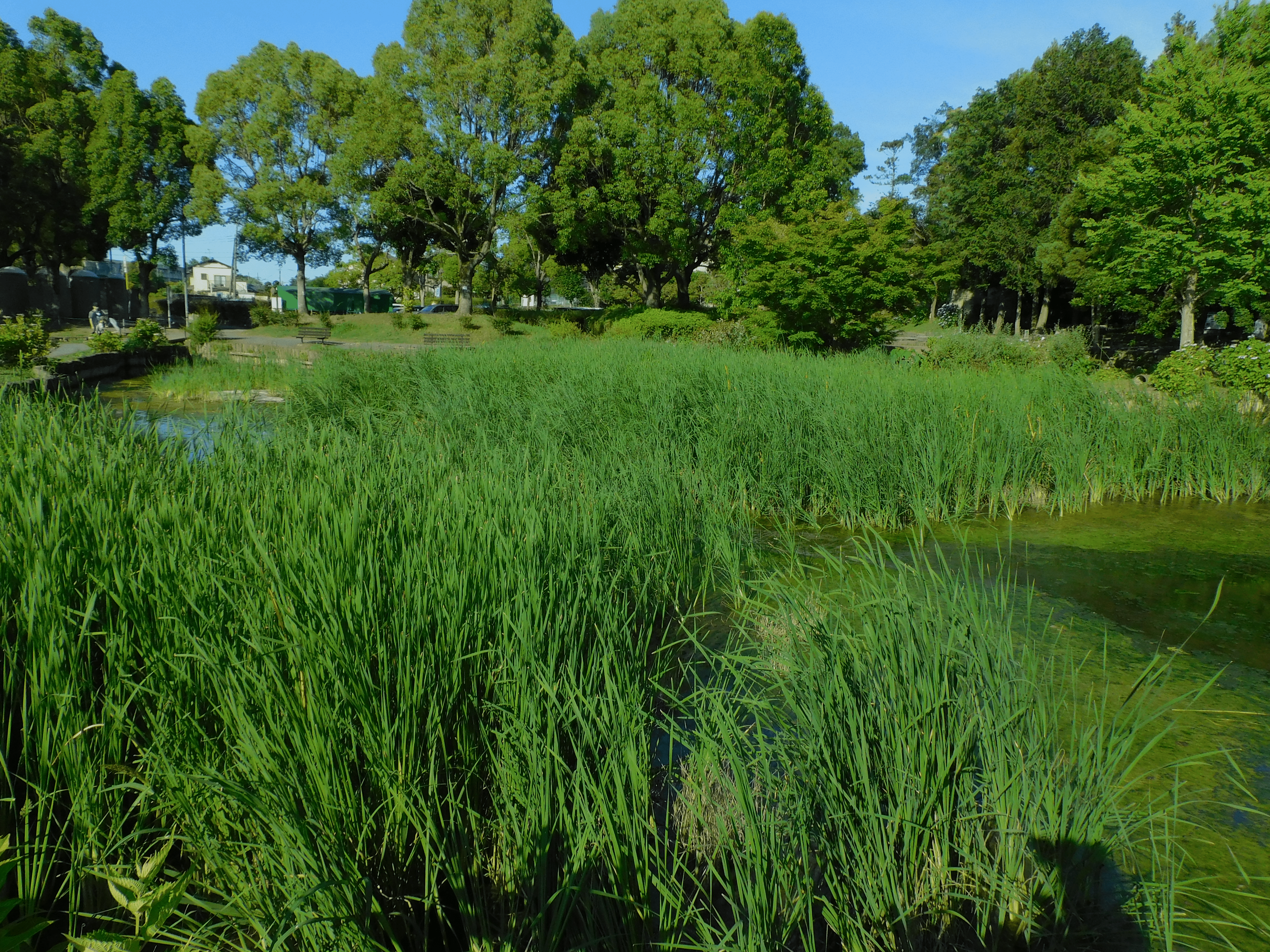 上尾丸山公園では、人工的な池を生きもの豊かな明るい湿地へと再生させています。