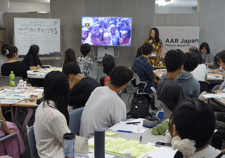 高校生探求型ワークショップにて、講師のAAR職員の話を聴く参加者(2025年8月)