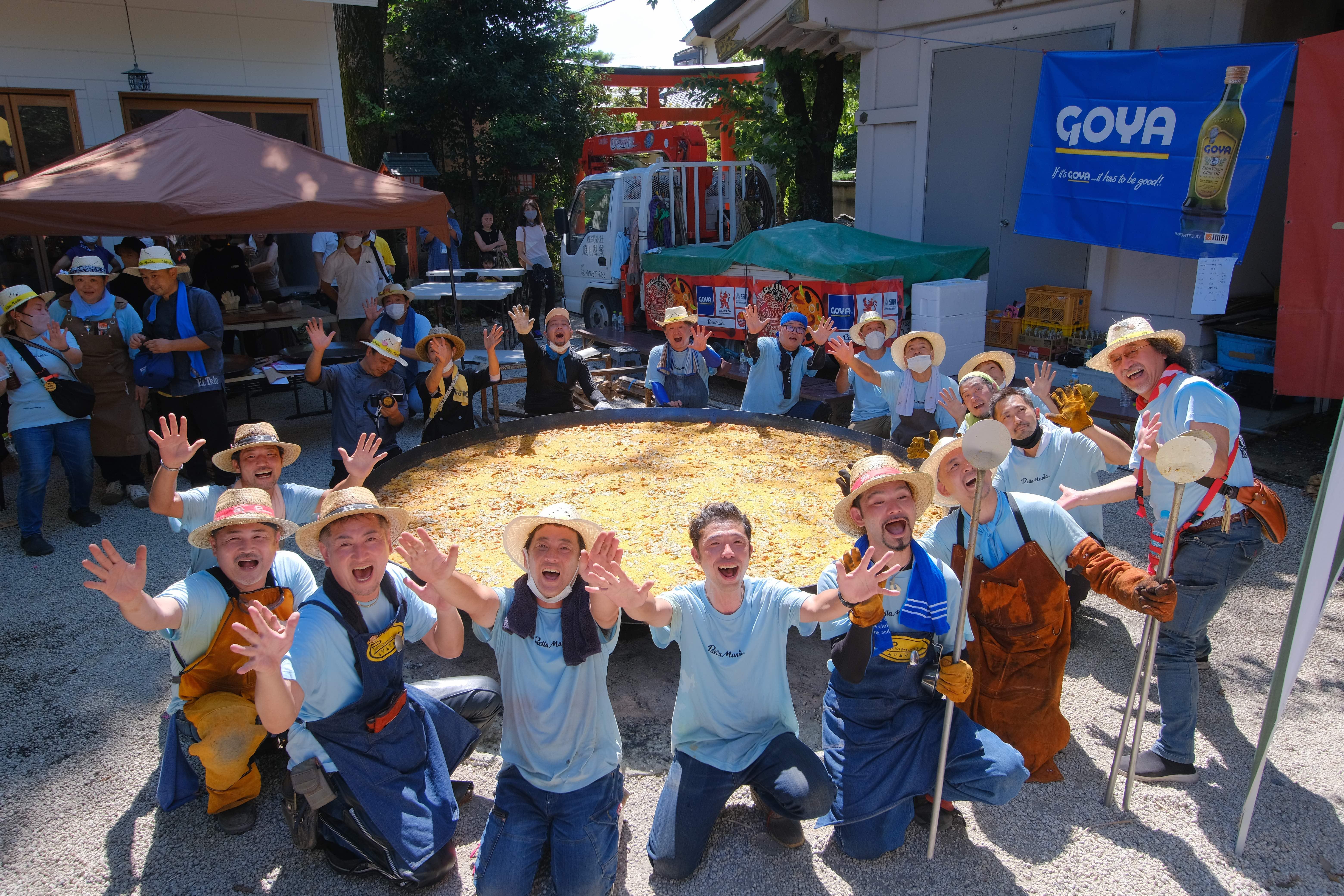 全国のパエリャ職人やパエリャ愛好家たちで腕を振るい、3メートルの大鍋でできたパエリャを分かち合う。