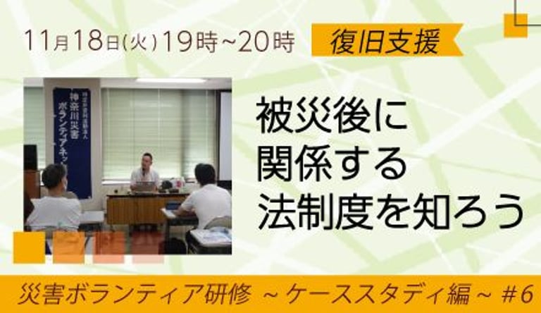 【11/18(火)オンライン開催】被災後に関係する法制度を知ろう災害ボランティア研修~ケーススタディ編~♯6