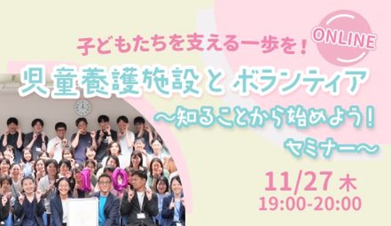 【11/27(木) オンライン】子どもたちを支える一歩を!児童養護施設とボランティア~知ることから始めよう!セミナー~