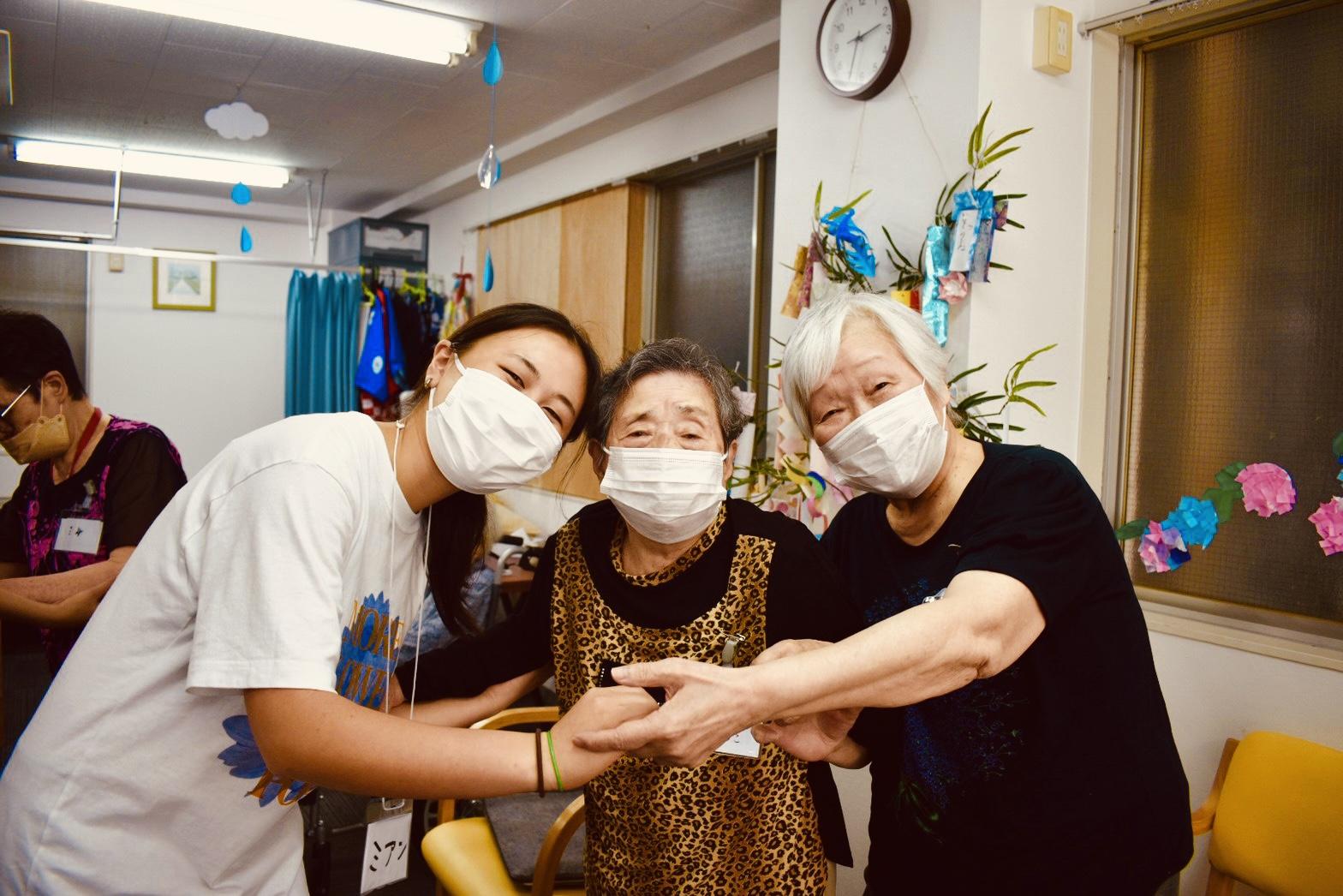 ご利用者さまからも「まあぁ、いいわねえ、若いわねえ」という声が上がり、少し緊張した様子の3人にも笑顔が…