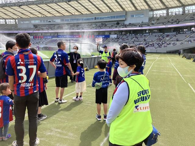 さて、今回の私の担当は「練習見学」です。どこで、どんな活動をしているのかご紹介します。試合前ピッチ練習をピッチサイドから見学いただける企画です。参加資格ですが、FC東京OFFICIAL MEMBERSHIPの会員のみの特権で、毎回20名様限りのイベントです。この参加者をご案内します。