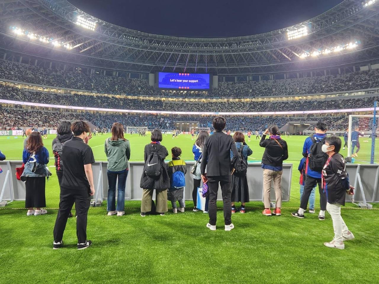 フィールドゲートからピッチに出る手前で担当スタッフからの諸注意を聞き、いよいよピッチに入ります。