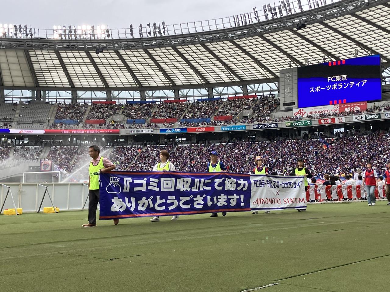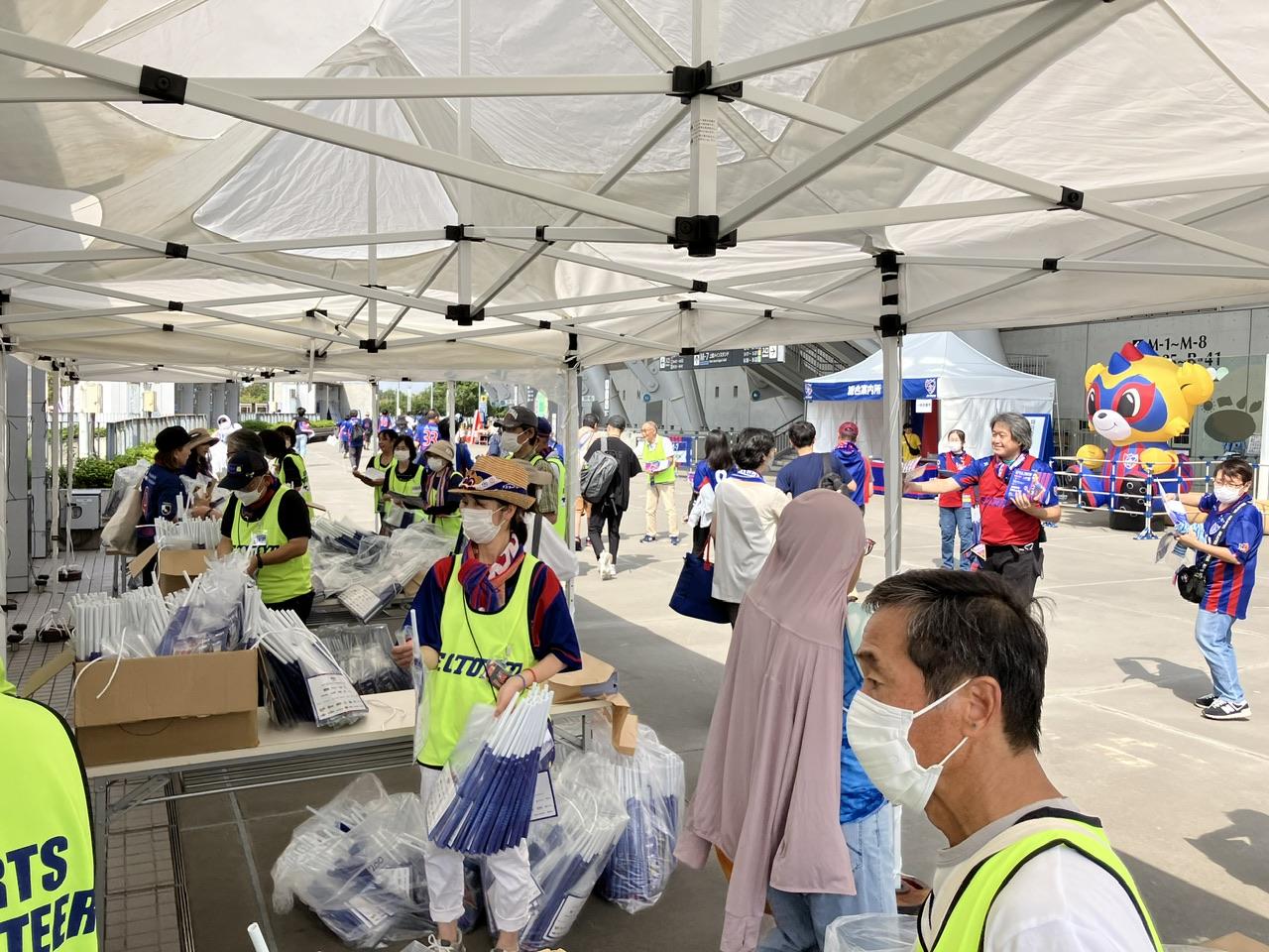 10月1日は都民の日、FC東京25周年記念の日です。ご来場者さんも3万人と多めでしたが、活動をご一緒した頼もしい大学生さんの協力もありなんとか無事終了。スポボラメンバーも忙しいけど楽しかったと満足げ。黒子ボラほっと一安心。
