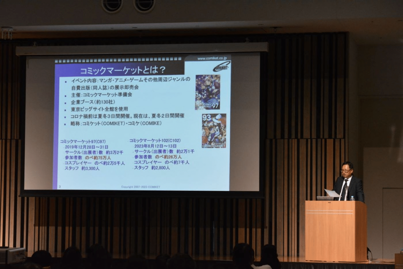 イベントを支える魅力に焦点を当てて企画し、東北大学大学院の岡田先生、東京マラソン財団の山本さん、コミックマーケット準備会の市川さんにご登壇いただきました。
