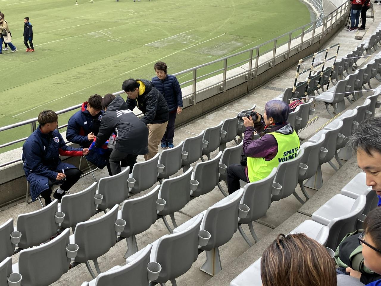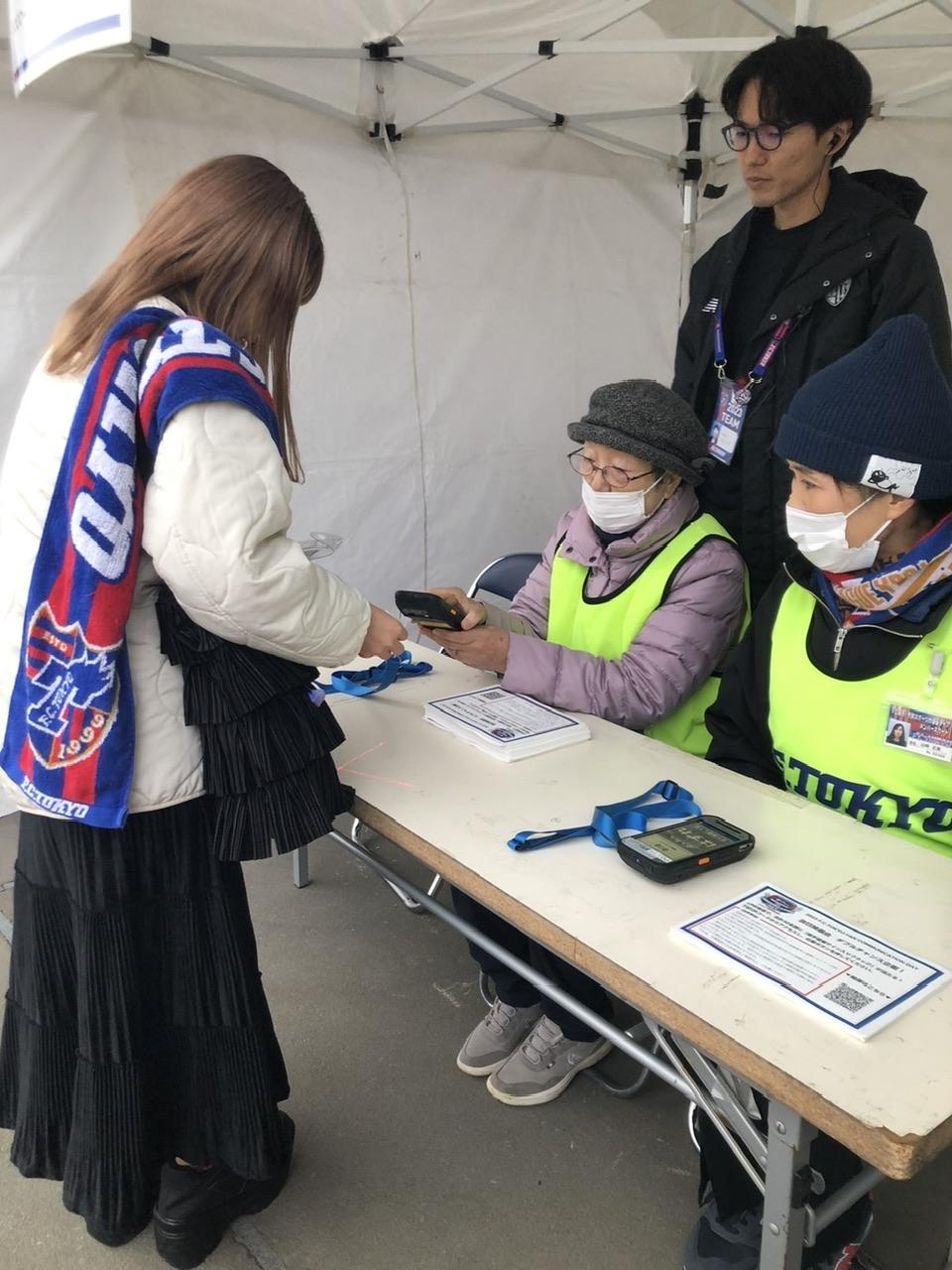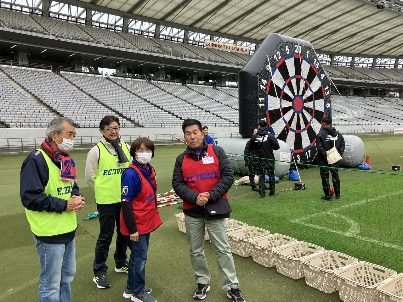 ・ピッチ上では味スタの天然芝の上で、『ふれあいサッカー』で選手とのミニサッカーを開催。参加者は抽選で選ばれた18歳以下のファンの方々。私たちは参加者の受付や案内などを行いました。