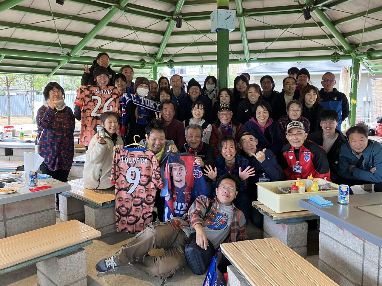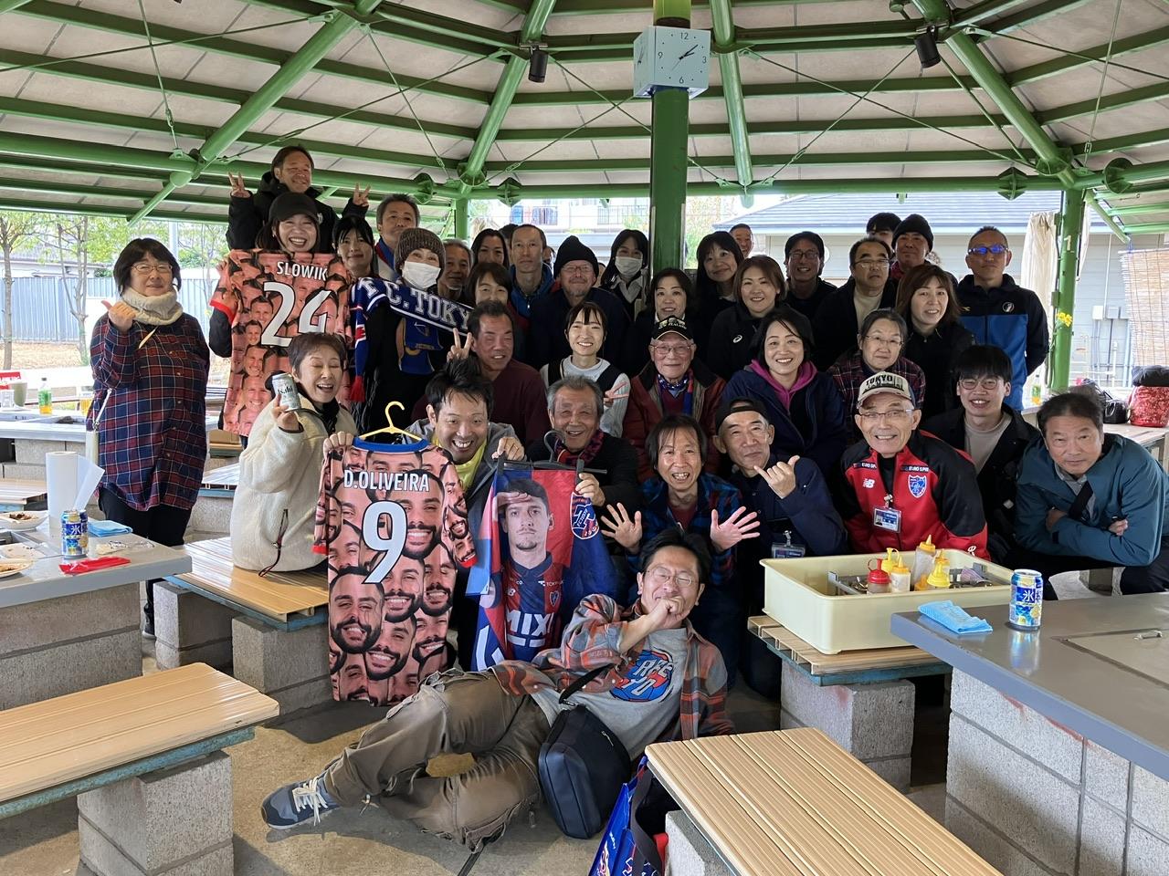 お腹が満たされると、皆んなそれぞれ飲み物を片手に席を移動したりして、自然とあちこちで談笑が始まります。普段なかなか話しができないFC東京スタッフさんとも会話が弾み、周りを見渡すといい感じにできあがってる人もチラホラいて、全体的にまったりした雰囲気に包まれていました。そして、楽しい時間はあっという間に過ぎていきー。最後は全員で集合写真を撮ってお開きとなりました。