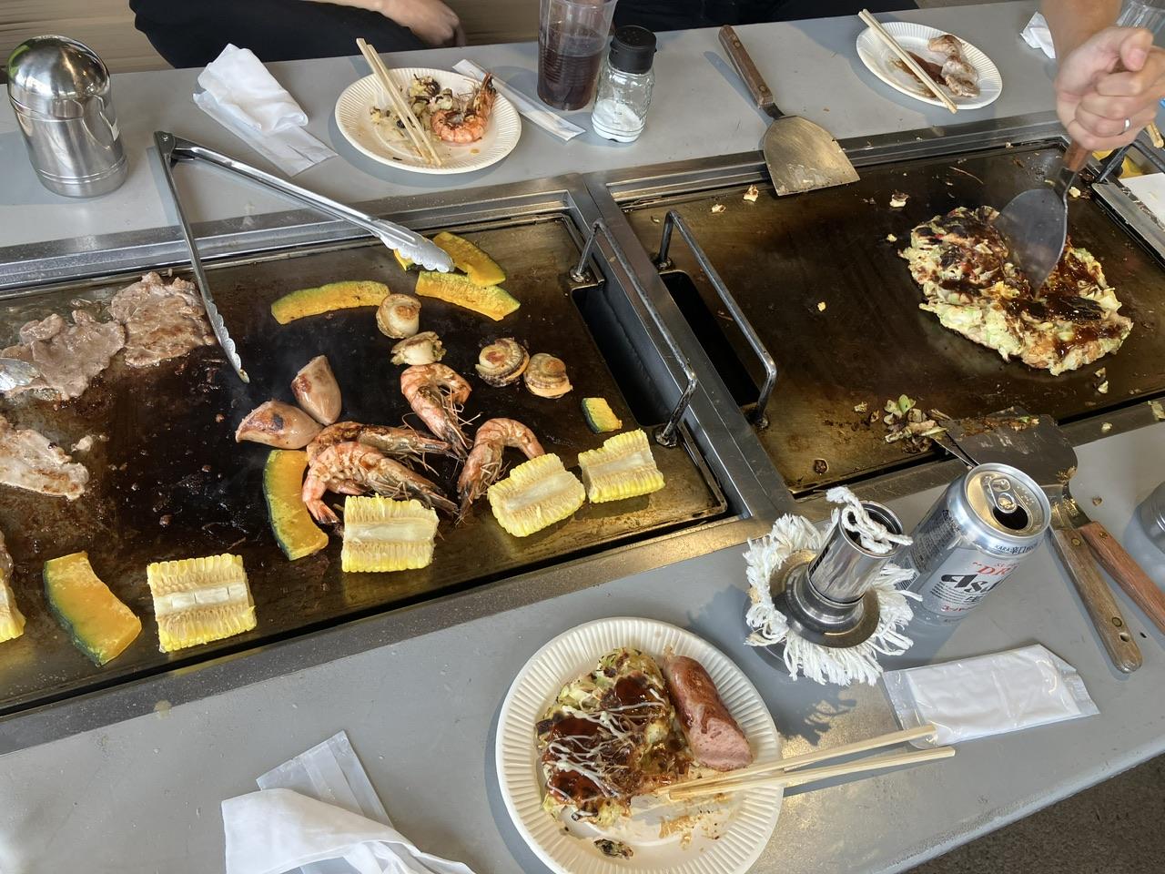 各テーブルでは、静かにお行儀良く食べていたり、家族の食卓感が出ていたり、黙々と焼いて食べるのにひたすら夢中になっていたり、とグループごとにそれぞれ特色が出ていて、ちょっぴり面白かったです。ちなみに私達のテーブルは焼くのも食べるのも全員立ったままで一番騒がしかったかも(汗)