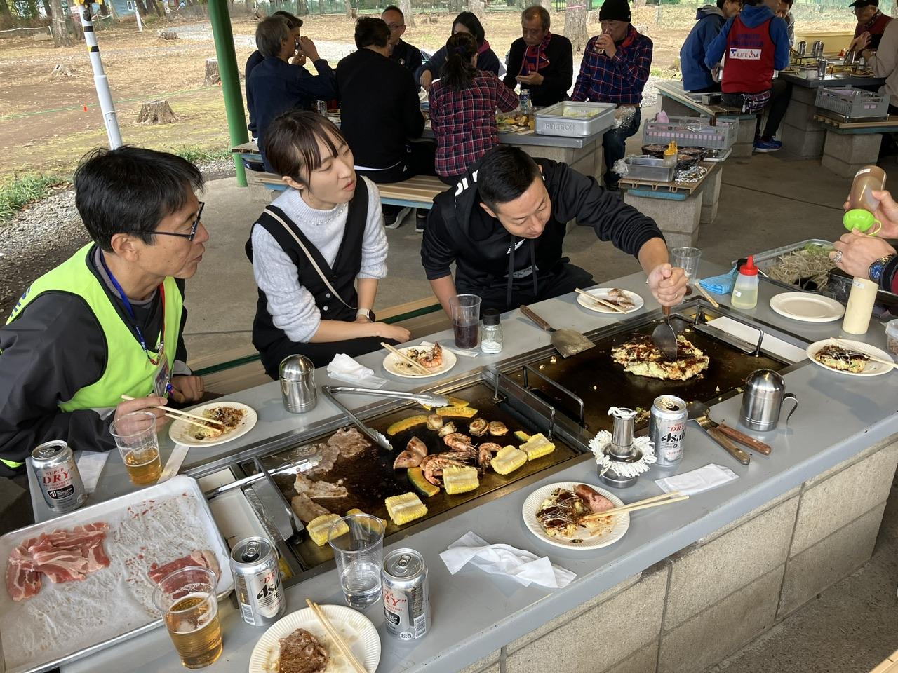 FC東京のスタッフさん達も加わり、乾杯の音頭がとられると、いよいよ、焼いて食べて呑んでのモグモグタイムの始まりです。