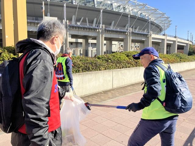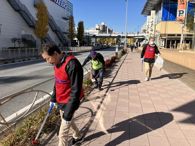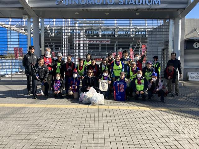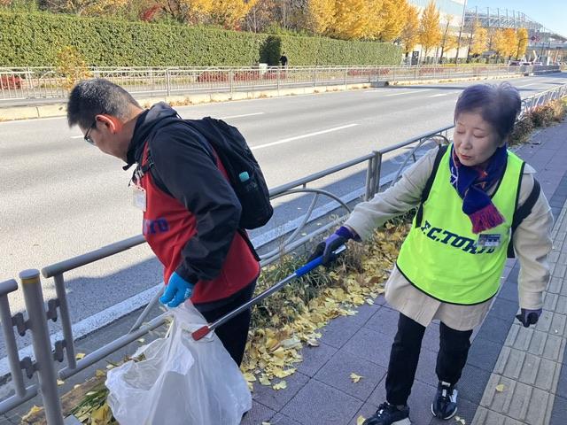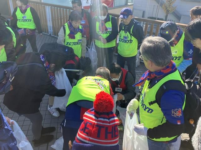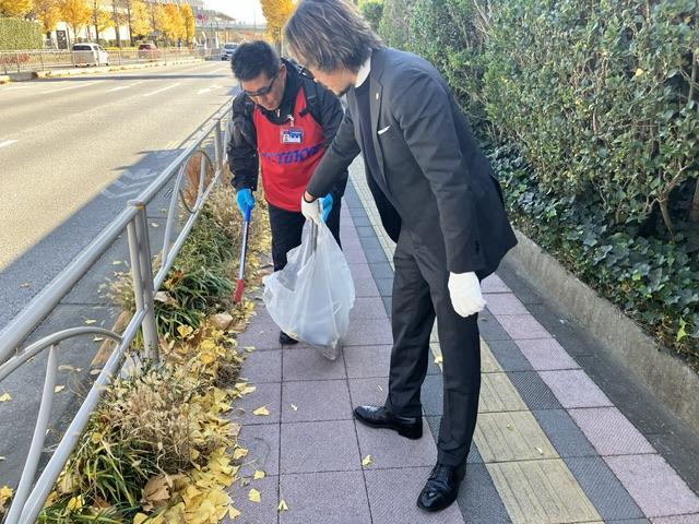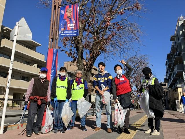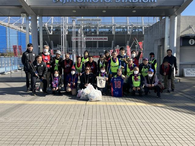 「味の素スタジアム前」交差点を中心に甲州街道やスタジアム通りなどで1年間の感謝を込めてゴミ拾いの活動を行いました。