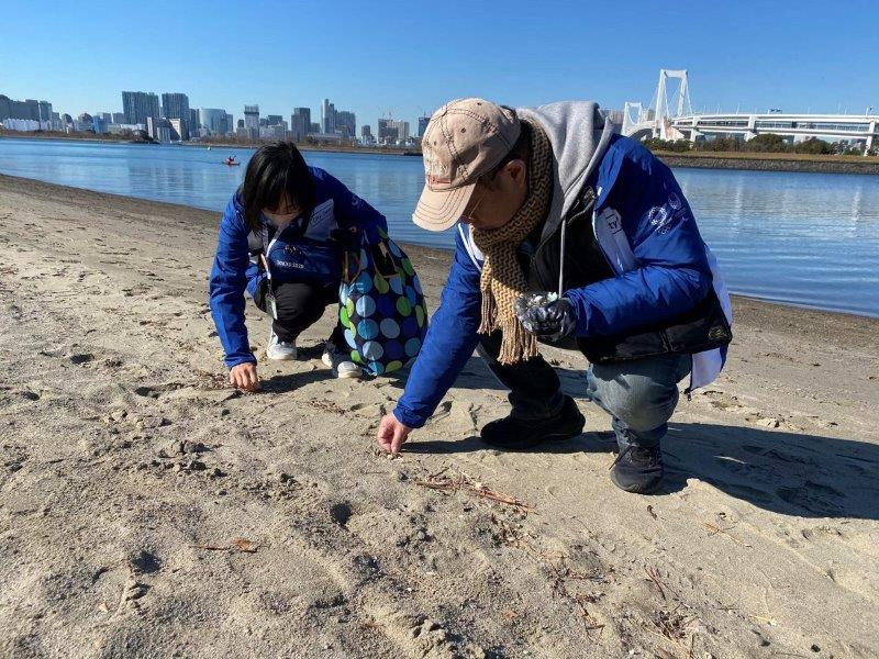・今回も「心の健康」を深め、参加したボランティア同士の「情報交換」の機会や、SDGsを意識したビーチクリーン活動体験は、トライアスロン会場にもなるお台場海浜公園のクリーン活動ができました。