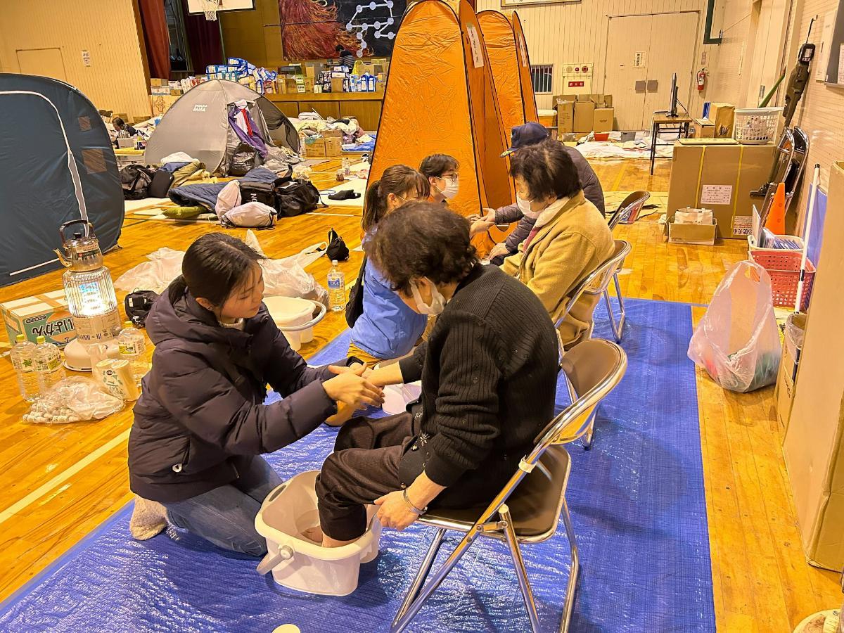 そうした中で、被災された方々が少しでも心が休まる時間を過ごせるように、日本財団ボラセンでは、災害ボランティア派遣第1陣として5名のボランティアを1/17~23に派遣し、珠洲市内の避難所で、足湯や炊き出し、夜間の見守りなどを実施しました。