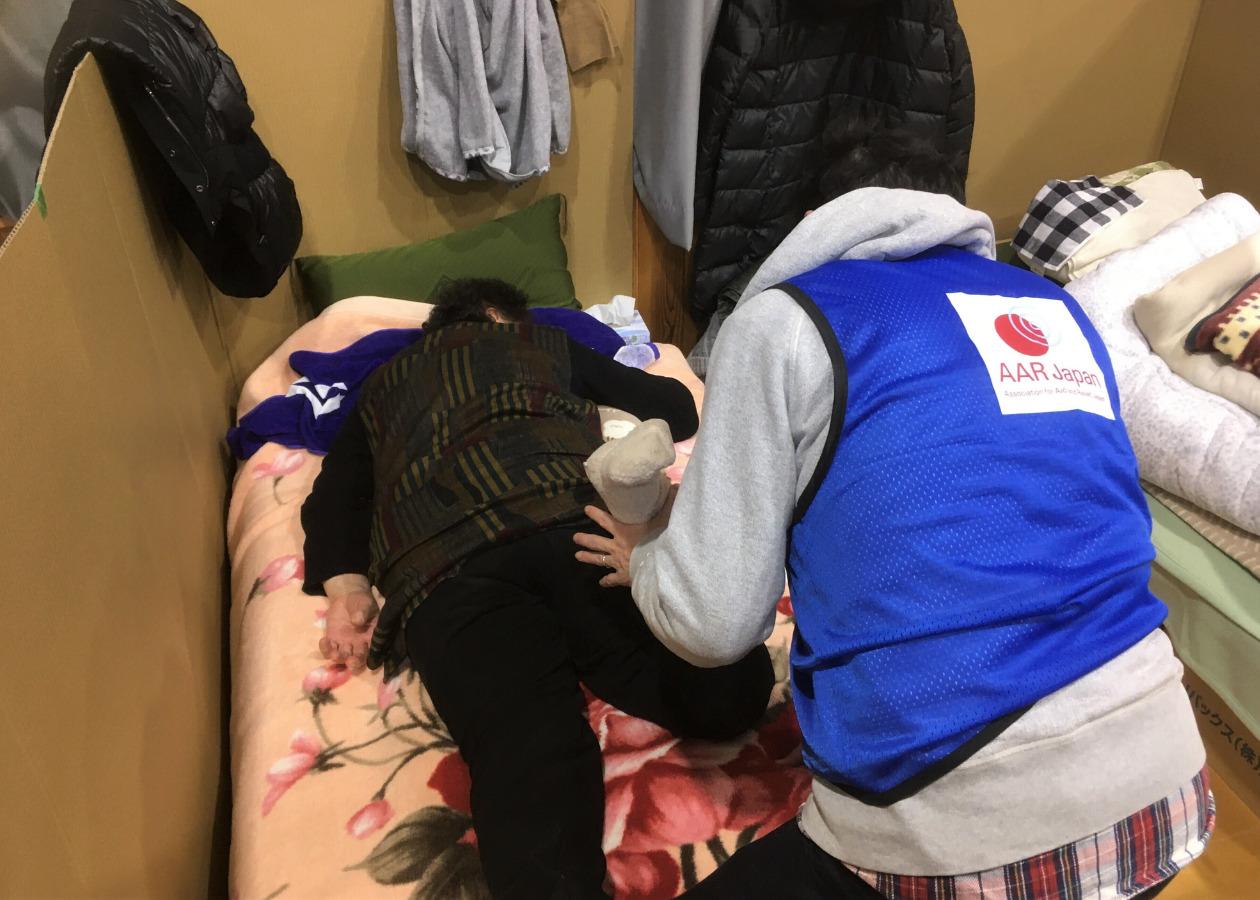 1月末から実施している鍼灸マッサージ師、理学療法士による出張マッサージも好評です。2月3~4日には、リハビリを専門とするAAR理事の河野眞・国際医療福祉大学教授らが被災地に入り、若桑公民館や能登町の白丸公民館などでマッサージの施術を行い、ご高齢の皆さんから「身体が固まっていたので楽になった」との声が聞かれました。