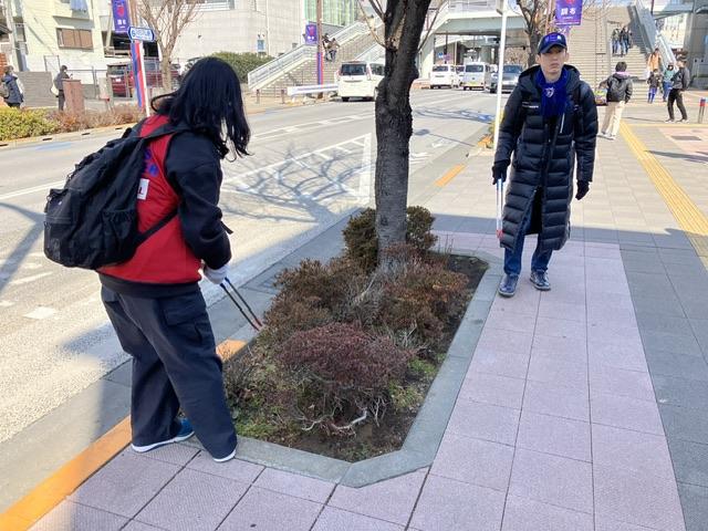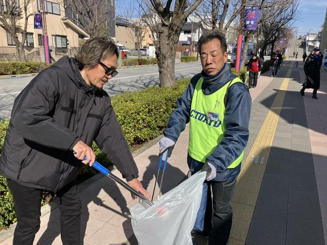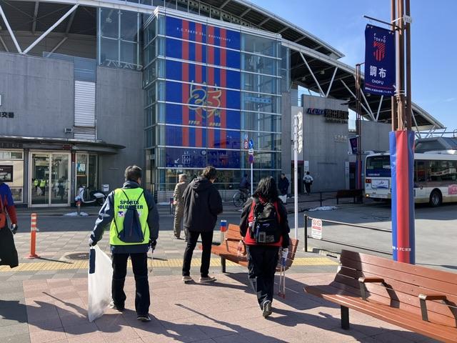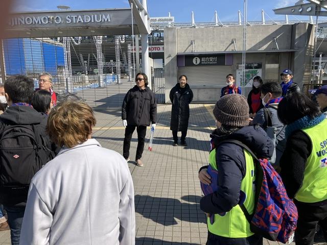 2月23日のJリーグ開幕まであと2週間、と迫ったこの日、2月とは思えない暖かい陽射しを浴びながら、石川CG(ナオさん)と一緒に味スタ周辺のゴミ拾いを行いました。