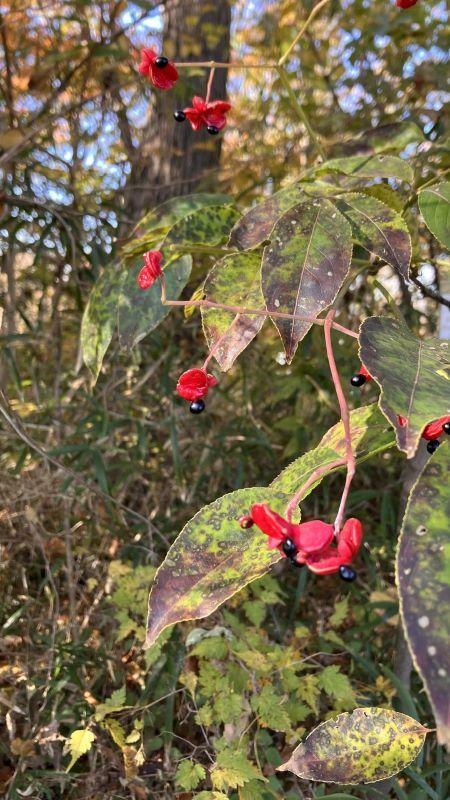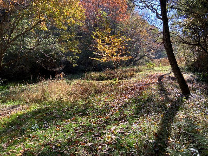 木漏れ日を通った日差しが眩しいほどでしたし、緑地の落ち葉を踏みしめて歩くカサカサが