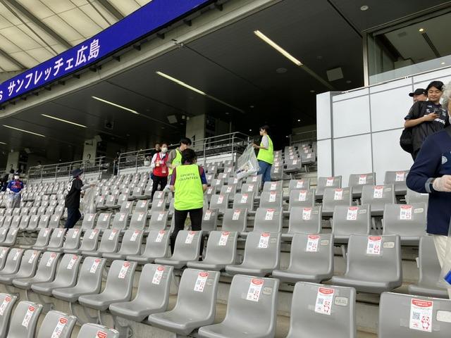 大喜びのガンバ大阪サポーターは、なかなか座席を離れませんが、こちらは、ゴミ回収に集中することで、次回は、大丈夫!と気合を入れました。