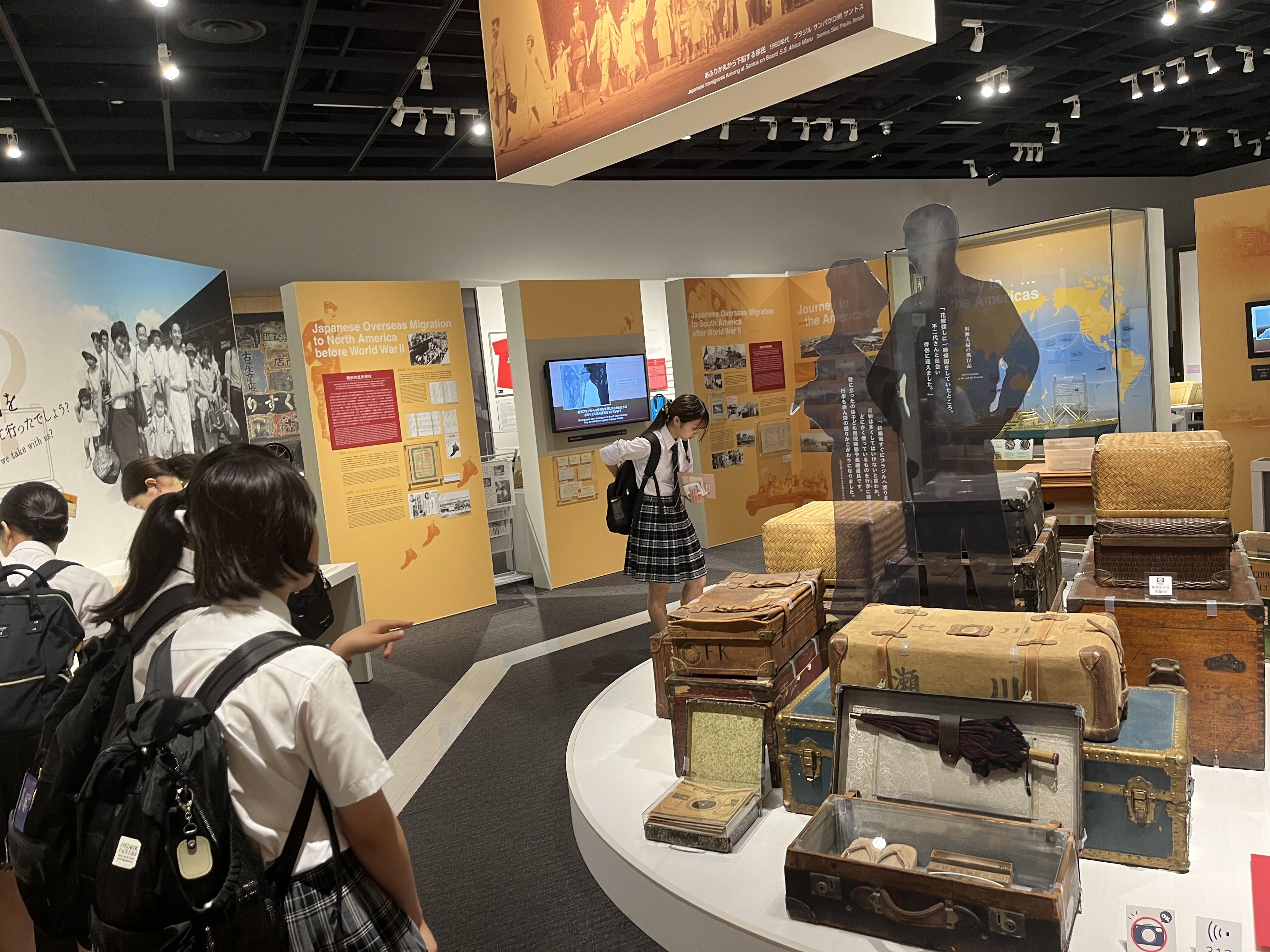 その後は資料館内をガイドの方に丁寧に説明していただきながら回りました。日本人が米国への移住を米国より「排日移民法」を出されたことによって制限された歴史についてのお話や展示物がとても印象的でした。また、日本からの移民が各都道府県ごとにどのくらいの人数いたのかを表す地図模型などがあり、視覚的に移住の歴史を学ぶことができる展示が多くありました。