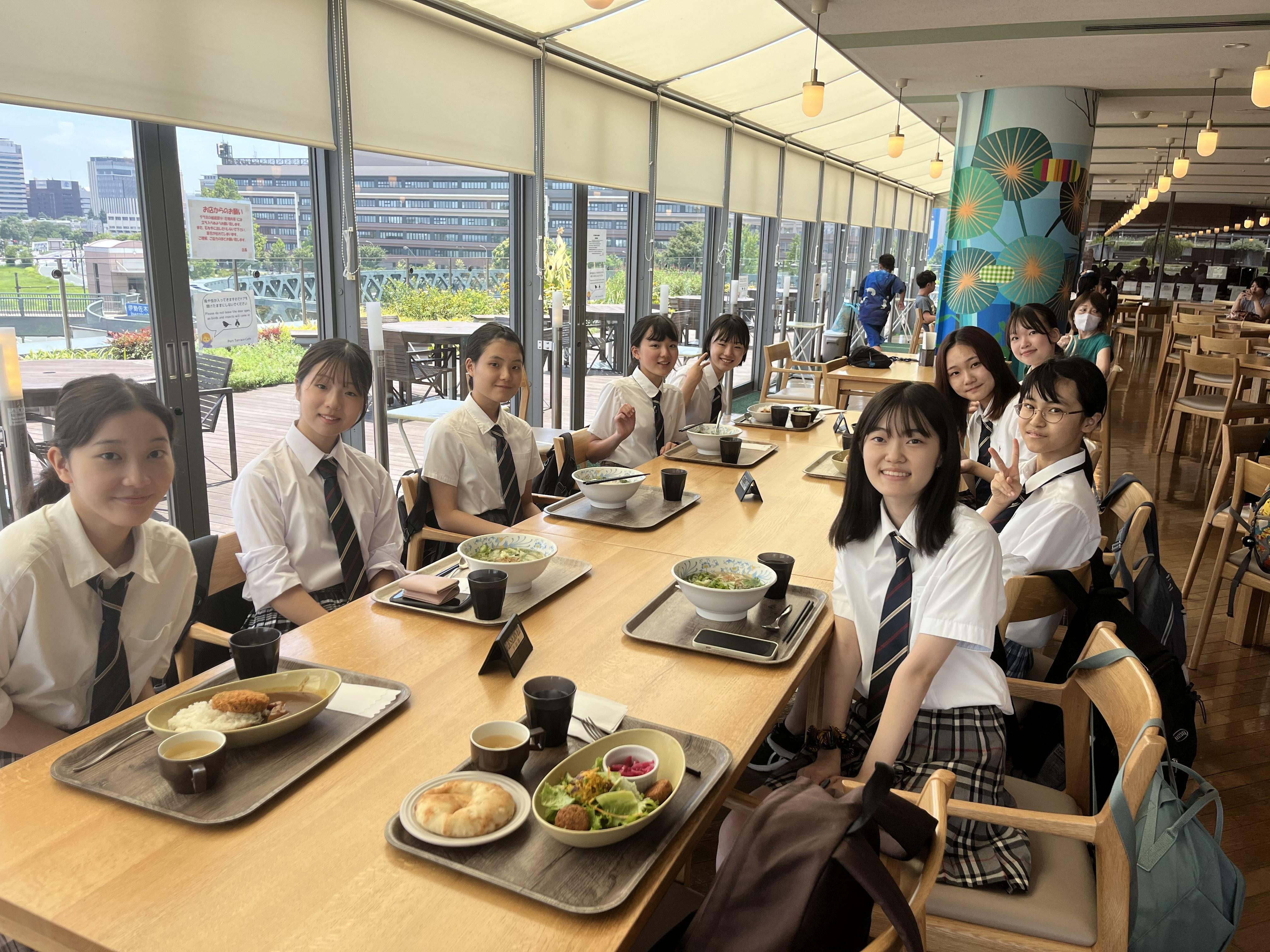 最後はJICA横浜内にある食堂の「ポートテラスカフェ」でお食事をいただきました。ベトナムのフォーやタイのグリーンカレー、パナマのビーフシチューのロパビエハや中東のファラフェルサラダなど、他ではなかなか食べられないようなメニューもありました。