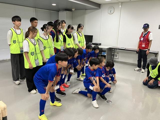 この日は『ハンドウィズハンド(HwH)』を担当。選手と手を繋いで入場する子どもたちの集合・点呼や、入場練習の補助をします。