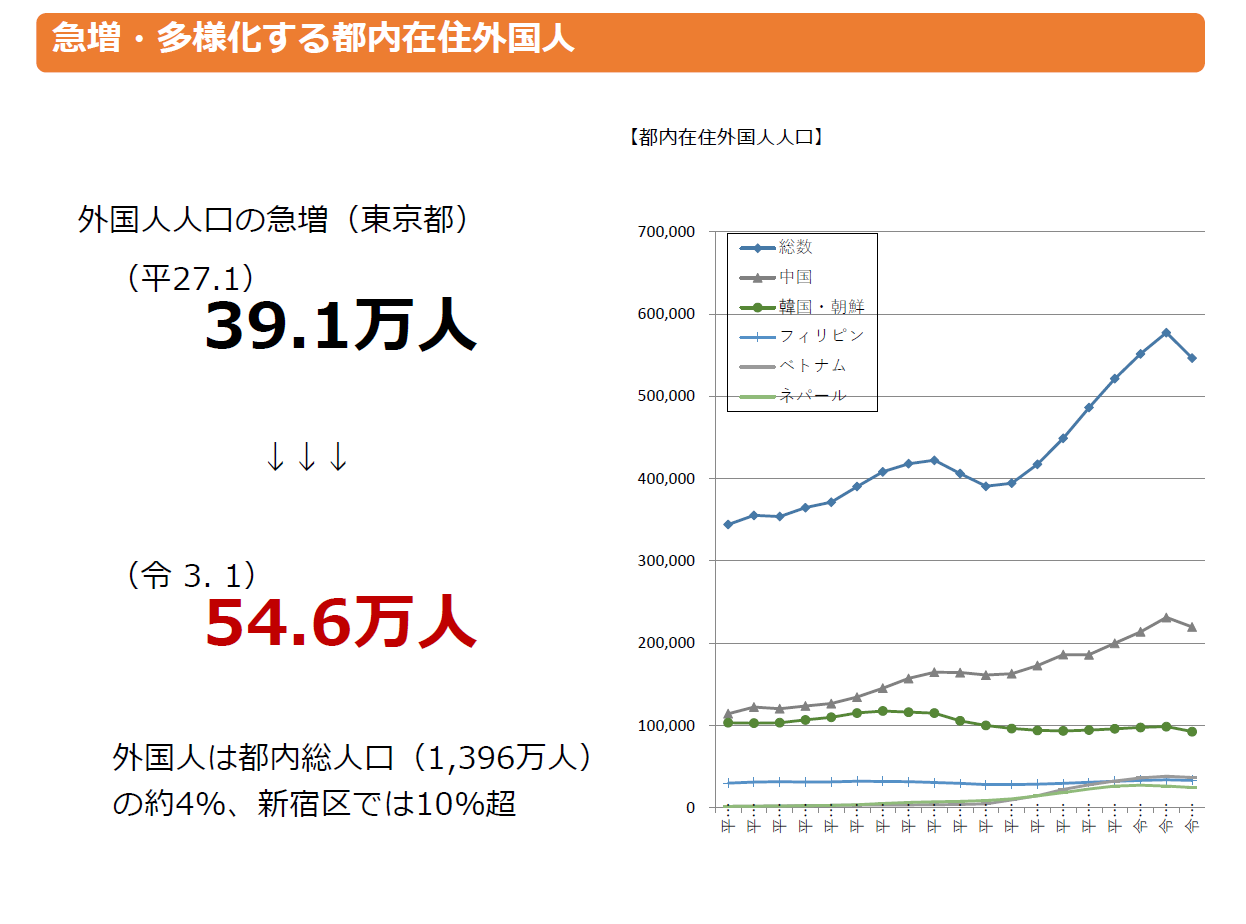 このように、都内で共に暮らす外国人が急増していること、そして、