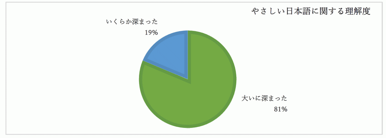 アンケートでは、参加者の8割を超える方から、「やさしい日本語」に関する理解が大いに深まったという回答を頂きました。