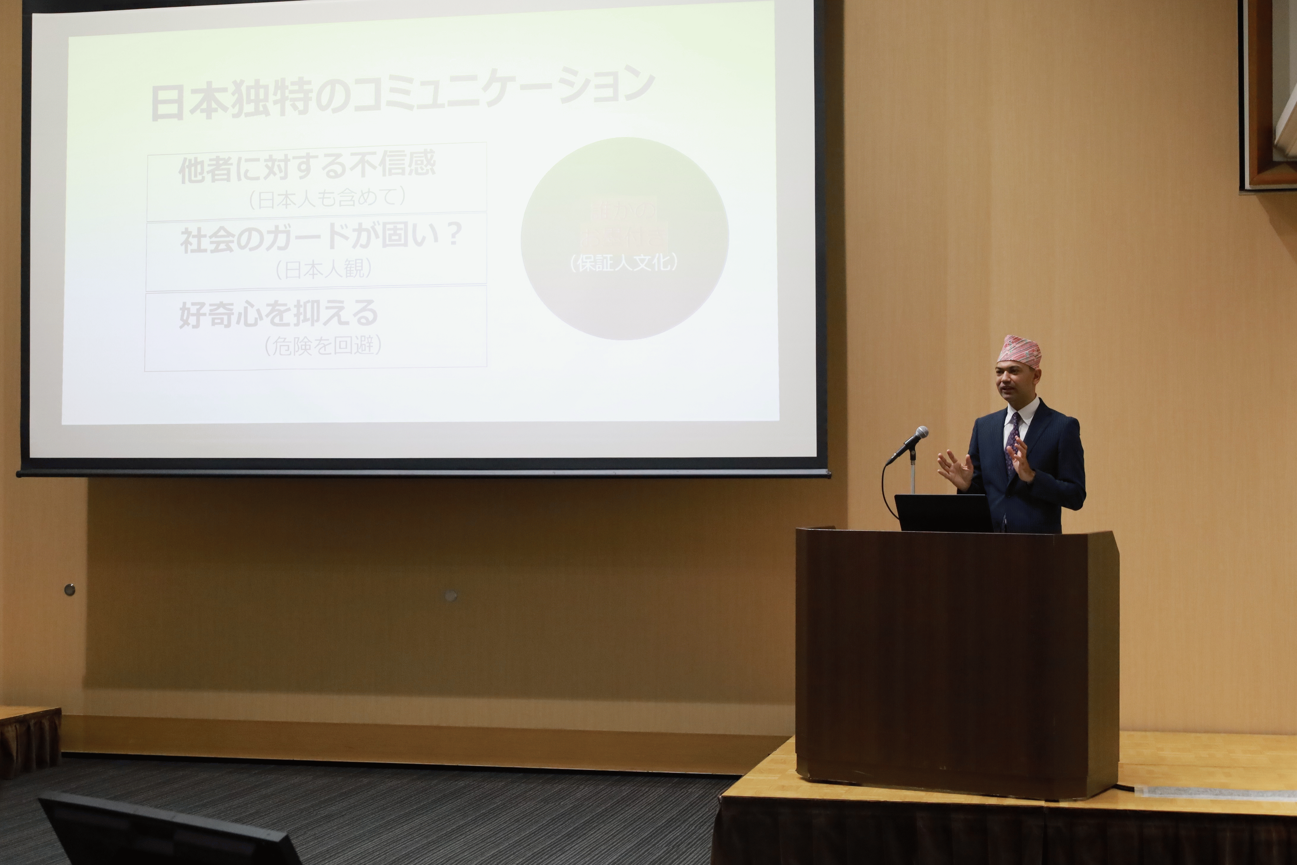 令和3年度「外国人おもてなし語学ボランティア」育成講座修了者向けセミナー(第3回)は、公益財団法人かながわ国際交流財団の職員であり、ネパール政府公式通訳としても活動されているジギャン クマル タパ氏から、自身の体験をもとにした異文化交流について講演をしていただきました。