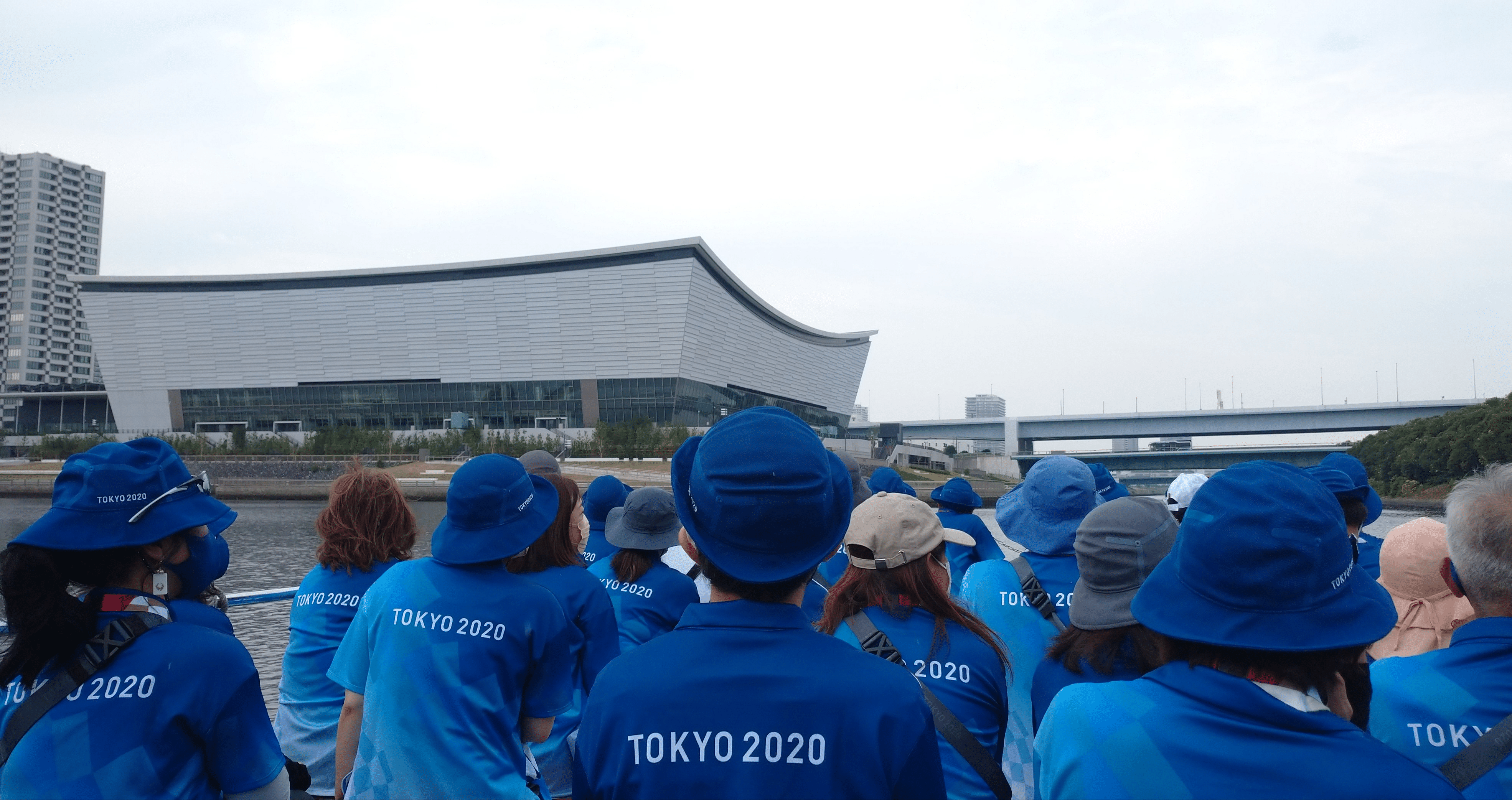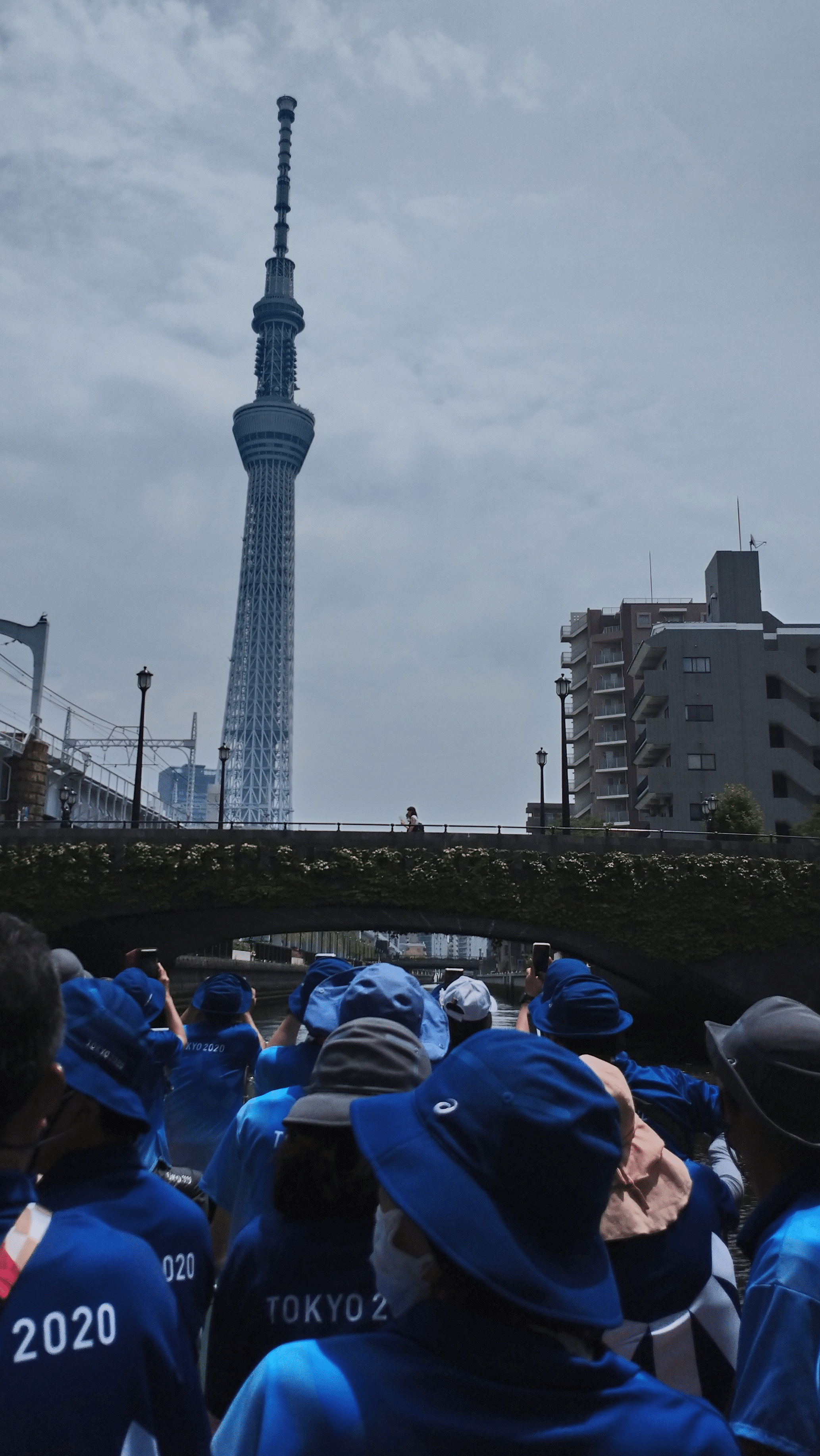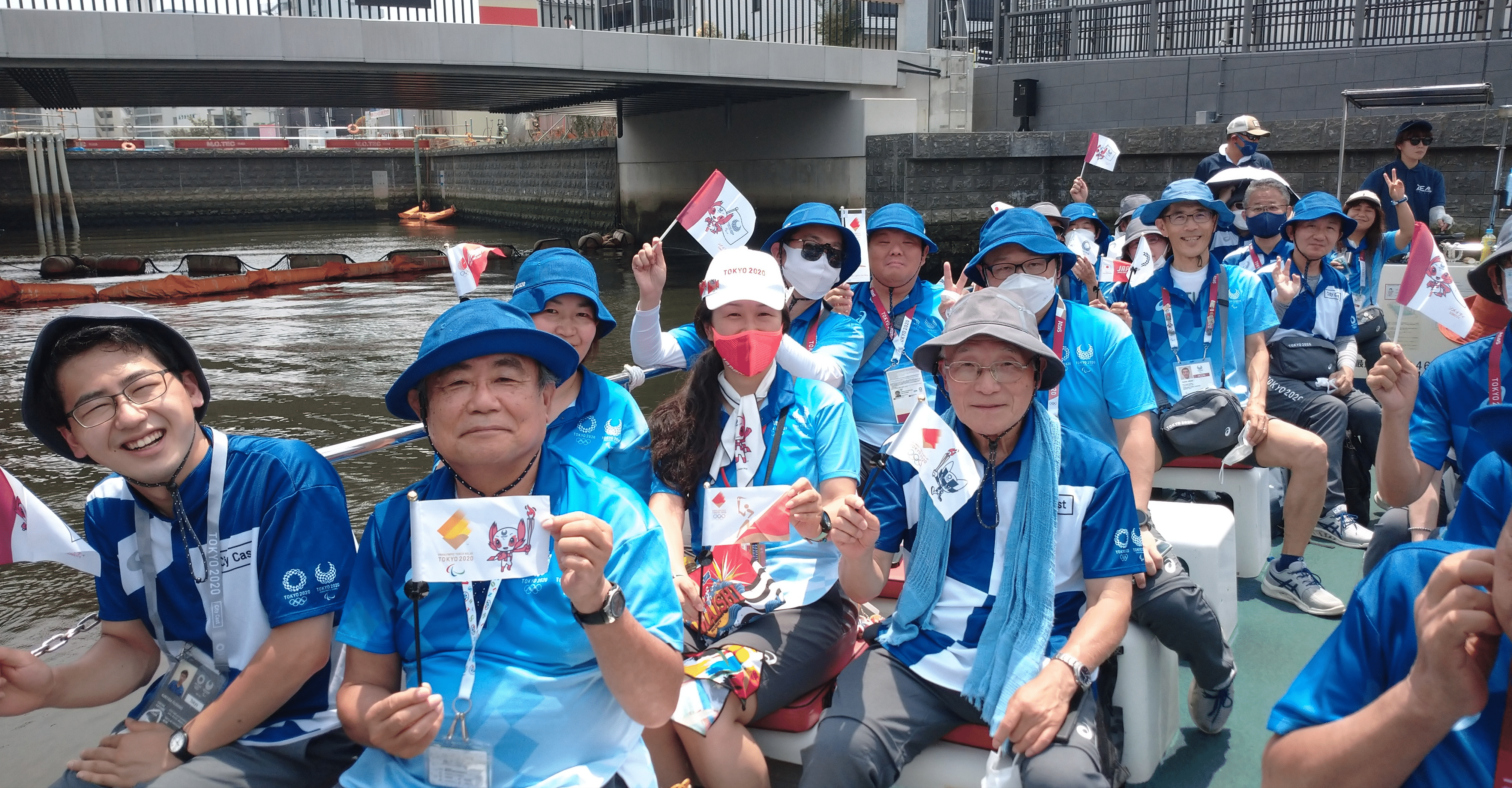 ⑦参加者の皆様とは、東京製旗さんから頂きました、オリパラ関連の小旗を振りながら、記念撮影なども船上で行いました!
