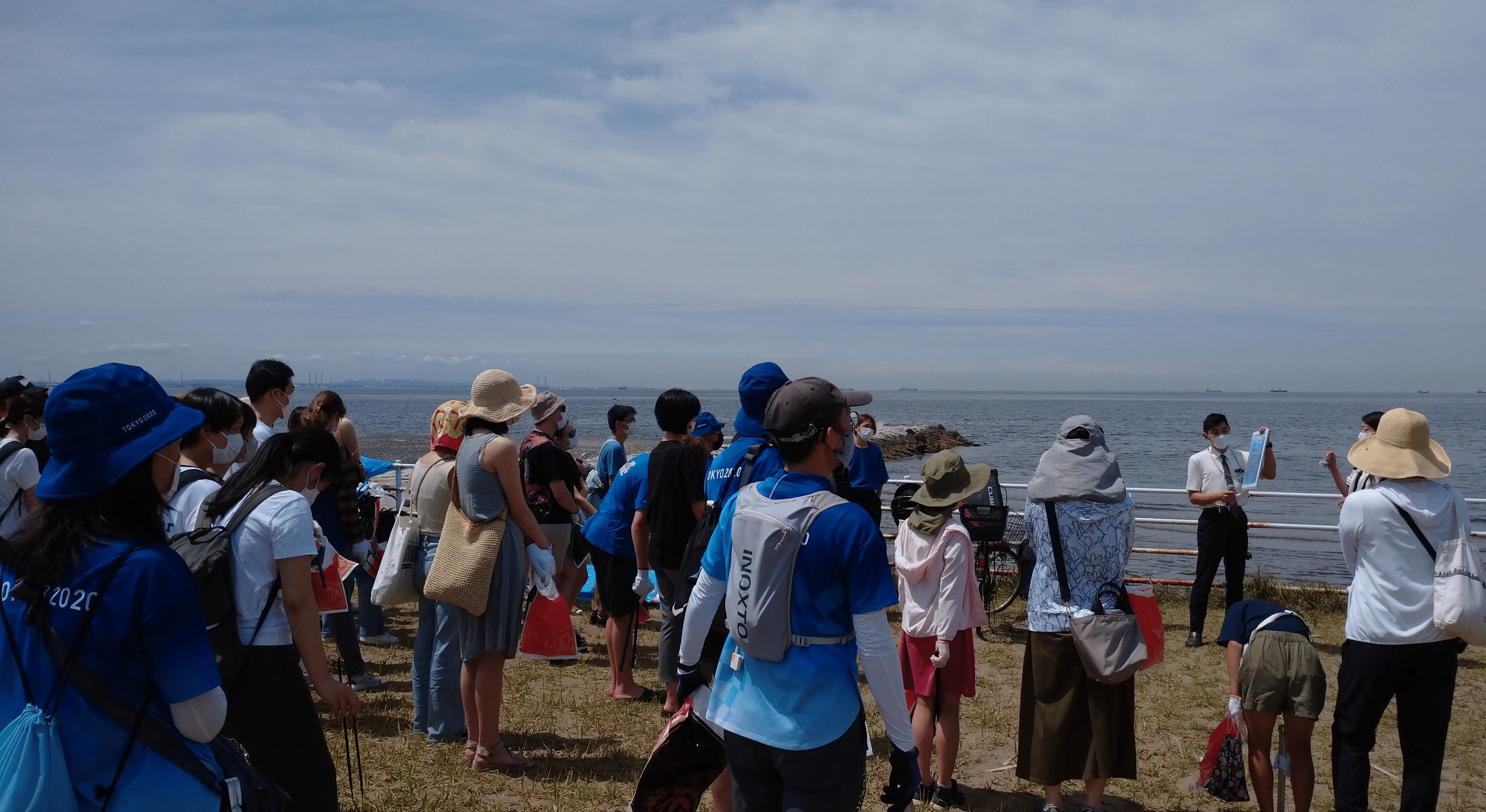 浜に打ち上げられたゴミを学生さんや、地域の団体、様々方々が100人以上集まり、オリパラボランティアなどが参加して、約30分程度、活動しました。