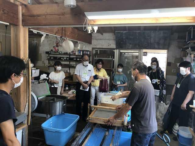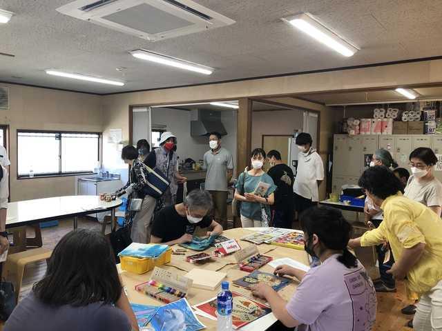 1)結の会にて、絵画教室、和紙作り、丁合作業等の説明をしていただく