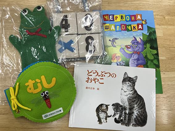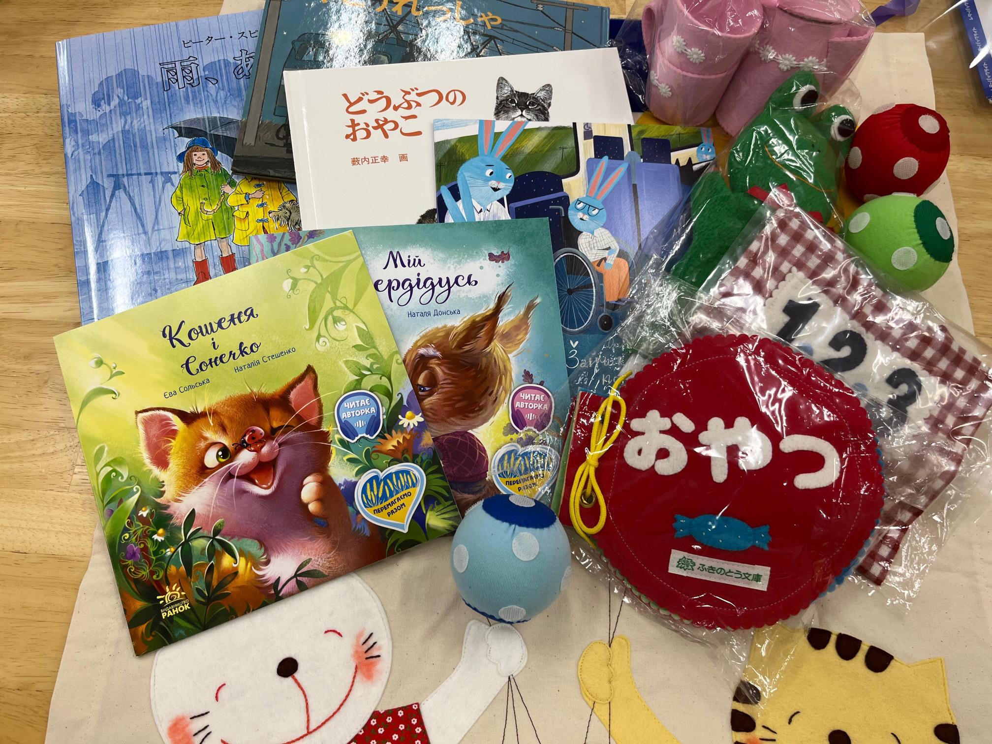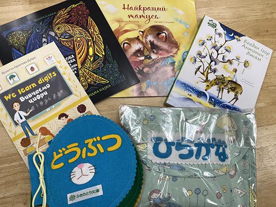 ウクライナからきた子どもたちへは、日本では入手困難なウクライナ語の絵本も差し上げています。