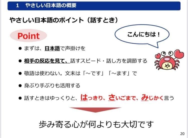 研修後、参加者から「とても面白かった」「やさしい日本語という言葉は知っていてもどういうものか知らなかったので、受けてよかった」「自分でやってみると意外と難しい」といった感想をいただきました。